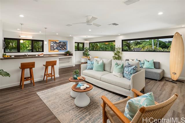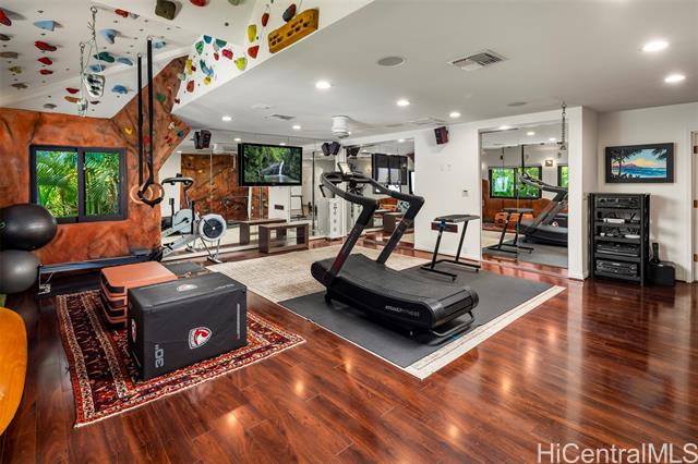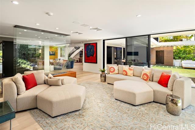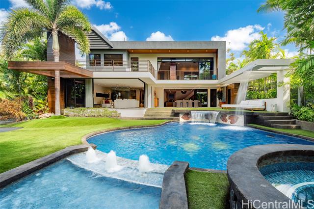 - RARE OCEAN ADJACENT ESTATE ON ROYAL PLACE. Between Royal Place and Kahala Avenue lies an extraordinary estate offering privacy, space & refined coastal living just moments from the ocean. Set on a generous 14,809 sq ft parcel, this remarkable residence features 5 generously sized bedrooms & 5.5 baths, highlighted by a dramatic primary suite with open air lanai, dual walk-in closets & spa-inspired bath. Expansive interiors showcase multiple lounge & living areas designed for entertaining, all overlooking stunning landscaped grounds. A versatile studio apartment w/full bath & kitchenette sits above the 4-car garage, connected through a spacious gym complete w/ climbing wall. Outdoors, an array of inviting spaces includes a sizable poolside covered lanai with dedicated dining & entertaining areas, a free-form swimming pool w/ adjacent spa & cold plunge, dramatic water features & lush tropical landscaping filled w/ flowering trees & stately palms. Blending artistry & discretion, this home captures the essence of modern luxury & timeless sophistication. Conveniently located near multiple beaches, golfing, The Kahala Hotel & premier shopping and dining. Truly a very special property.