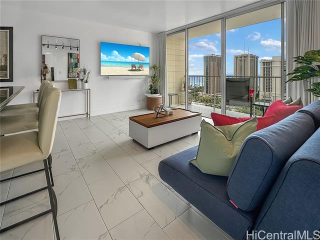 - Fully renovated in 2024, this high-floor one-bedroom at the Pavilion at Waikiki combines stunning ocean, sunset, and city views with modern, turn-key living. Designed for comfort and style, it features all-new appliances, full-size washer and dryer, private lanai, and elegant furnishings throughout. The pet-friendly building allows 30-day minimum rentals, offering flexibility for a primary residence, vacation retreat, or investment opportunity. Enjoy the rooftop amenities: pool, BBQ area, men’s & women’s saunas, showers, secure entry, and guest parking. Ideally located near Fort DeRussy Beach Park, Waikiki Beach, Ala Moana Center, and the Hawai‘i Convention Center, with dining, shopping, night life, and transit just out your door. The Pavilion offers a peaceful community atmosphere with many full-time residents, making it equally perfect as a home, second residence, or income-producing property. Watch Friday night fireworks from your private lanai or the rooftop and experience the best of island living in Waikiki.