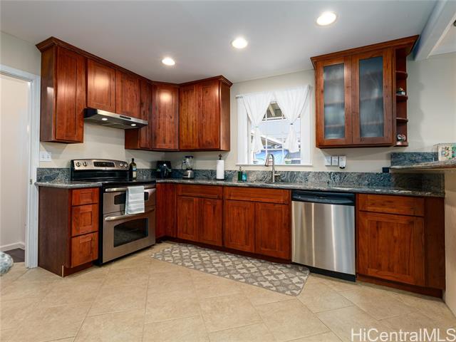 - Welcome to this charming, move-in ready single-level home in the heart of Wahiawa! Thoughtfully renovated in 2010 and freshly painted (exterior and back half of the interior), This beautifully maintained 3-bedroom, 2-bath versatile property offers modern comfort with classic island character. The flexible floor plan allows for a 2-bedroom, 1-bath main living area plus a 1-bedroom, 1-bath guest suite — perfect for multi-generational living, rental potential, or additional privacy for guests. Enjoy the bright and open living space featuring hardwood flooring, a beautifully upgraded kitchen with granite countertops, wood cabinetry, and stainless steel appliances. The 72 sq. ft. covered lanai provides a relaxing outdoor space, while the carport and long driveway offers parking for multiple vehicles. 15 owned solar panels, keeping utility costs low. Conveniently located near schools, parks, shopping, Schofield Barracks, Wheeler Army Airfield, and a short drive to North Shore beaches. Schedule a showing today!!