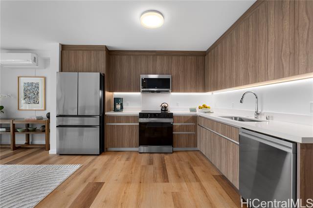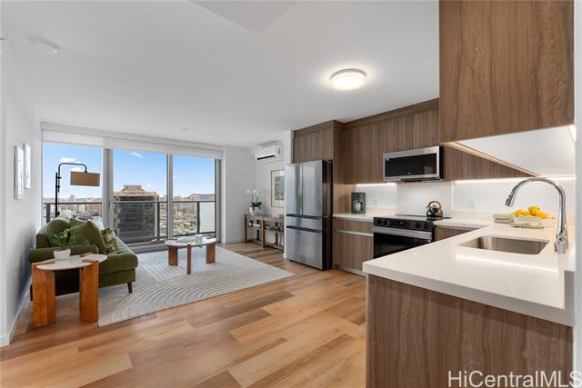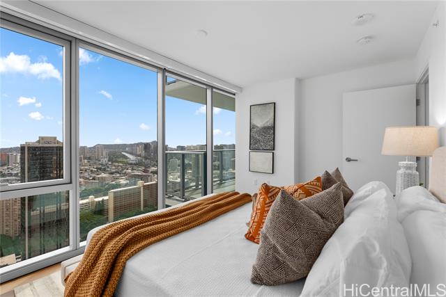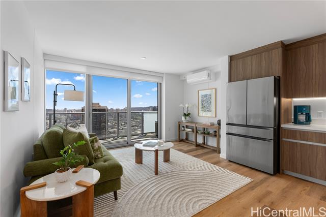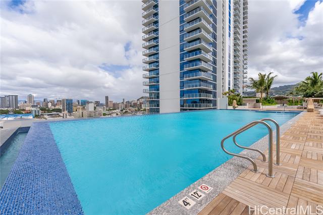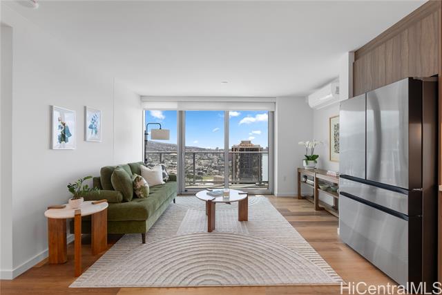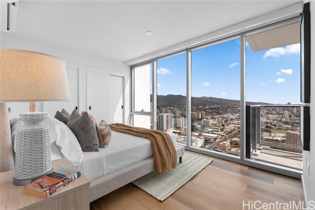 - The Park on Ke'eaumoku is completed & resales present an EXCELLENT opportunity to buy NEW without the wait! Located in the Liona Tower, this preferred larger 1-bedroom, "07"unit is move-in ready, INCLUDING FURNITURE, AUTO WINDOW SHADES, HARDWOOD FLOORS! Ideal high-floor unit on the cooler east facing side, with unobstructed, sweeping mountain, Diamond Head, & Waikiki views. Enjoy colorful rainbows on misty mornings as the sun rises, & expansive city lights in the evenings. Wonderful, East facing breezes filter through the unit for those who prefer a fresh atmosphere of Hawaii's clean air! The Park On Ke'aumoku is centrally located in urban Honolulu, within minutes to a wide variety of restaurants, Ala Moana Shopping Center, Ala Moana Beach park, nightlife & Honolulu's lively urban scene. These resort style amenities make this price a bargain: INFINITY POOL, CABANAS, WHIRLPOOL SPA, BBQ PAVILIONS, CLUB ROOM, FITNESS, YOGA STUDIO, SAUNA, CO-WORK SPACES, MEDIA LOUNGE & PRIVATE MOVIE THEATER. As building costs continues to rise, Honolulu's newest residential landmark condominium, offers the perfect first time home, investment or vacation retreat!