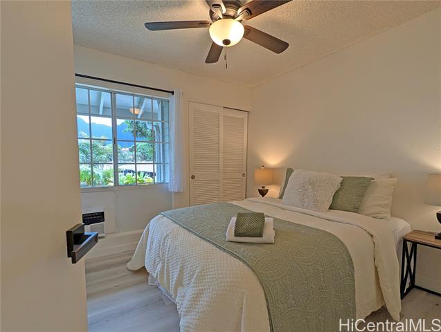 - WELCOME HOME to this charming second-floor townhome, where a private balcony frames stunning Ko‘olau Mountain views and creates the perfect backdrop for morning coffee or peaceful sunset at the end of a day. Inside, the inviting layout blends comfort and style, enhanced by thoughtful updates including new flooring, fresh paint, modern ceiling fans and lighting, and a beautifully refreshed kitchen with new appliances. A dishwasher, and a full size washer and dryer add everyday ease, while window A/C units in each room keep the space cool and comfortable year-round. Nestled in a well-maintained community with convenient access to Windward Mall, grocery shopping, dining, movies, parks, and major routes like Likelike Highway and the H-3, this home offers the ideal retreat to experience Hawai‘i living at its finest. First Open House: Sunday, December 7th from 2pm–5pm.