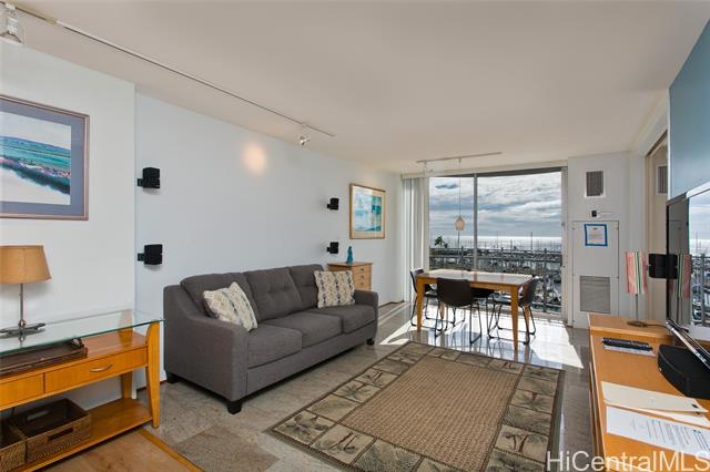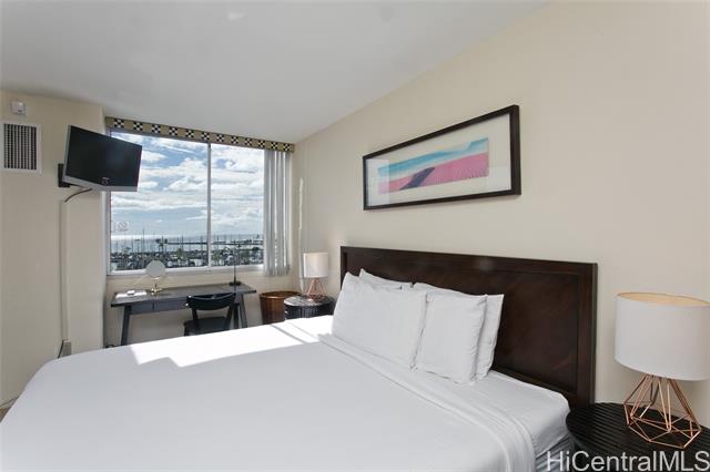 - Beautiful Ocean and Marina view. Fully Furnished. Tile and wood flooring through out and open kitchen. Enjoy Every Friday fireworks right in front, Ala Moana shopping Center and only few minutes to the beach! Perfectly located in the heard of the Waikiki. common washer/dryer and located on 8th floor. Short term rentals are allowed! Perfect for the investment unit or you can use as a vacation home.