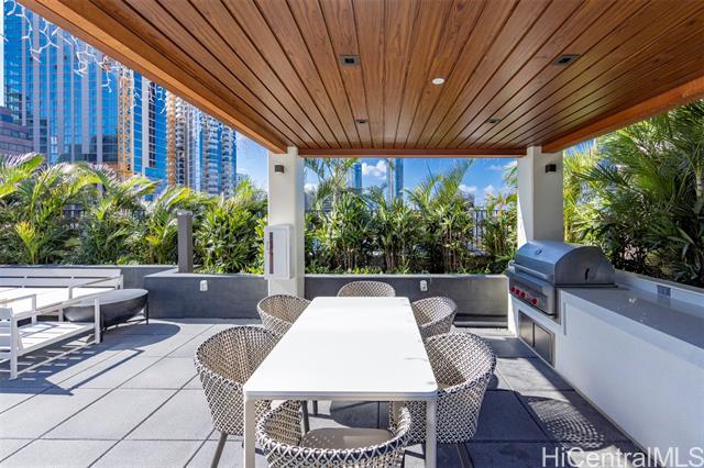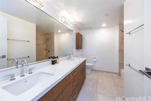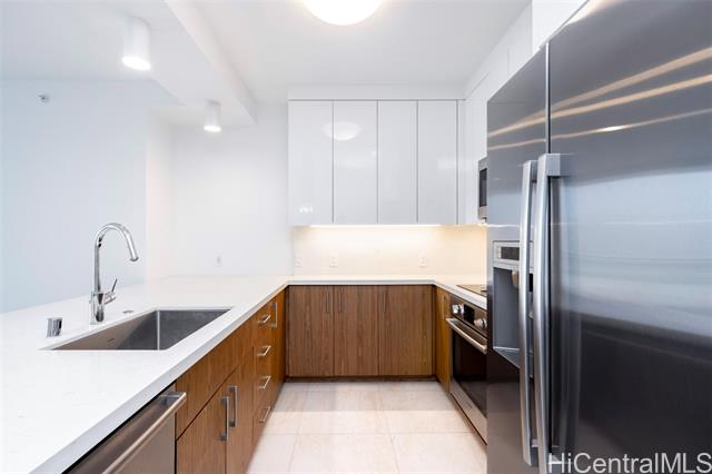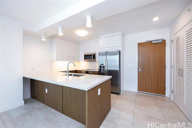 - Azure Ala Moana is one of Honolulu's newest condominium destinations. Located just blocks from Ala Moana Center, Ala Moana Beach Park, nearby shops, restaurants, and entertainment, this ultra-convenient location offers a sought-after "Work, Play, Live" lifestyle. Step inside this 2-bedroom, 2-bath, 916 sq.ft. residence to find a welcoming bright and modern interior design. Features include a two-tone kitchen with wood and lacquer cabinetry, built-in bar seating, and high-end appliances, an open-concept primary living space with a flexible 2-bedroom floor plan, plus dynamic urban Honolulu and Pacific Ocean views from the primary bedroom and your 73 sq.ft. lanai. The primary suite includes a walk-in closet with a closet system, plus a large ensuite bath with a double vanity. This resort-style destination offers an exceptional living experience and high-end amenities including an infinity-edge pool, lawn spaces, barbecue pavilions, a club lounge with kitchen, theater room, fitness center, guest suites, and more. Welcome home to elevated urban living in Honolulu.