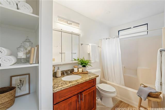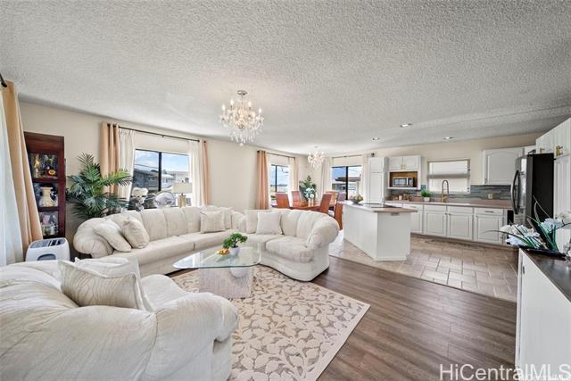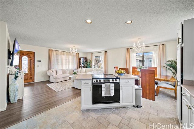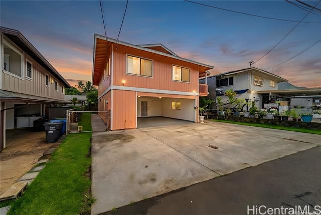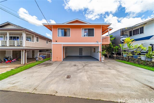 - This versatile two-level home offers a flexible layout ideal for modern living. The upper floor features an open-concept kitchen, dining, and living area filled with natural light, along with a spacious primary bedroom that includes a large versatile room—perfect for use as a walk-in closet, office, or flex space—and an en suite bath with a double vanity. A second bedroom and full bathroom complete the upper level. The lower level offers two additional bedrooms, a full bath, a comfortable living area, and a convenient kitchenette—ideal for guests or multi-generational living. A large driveway and two-car garage provide ample parking, while scenic views of Kaneohe Bay and the surrounding mountains enhance this inviting home in the desirable Waikalua neighborhood.