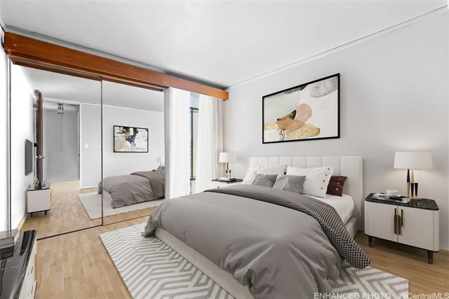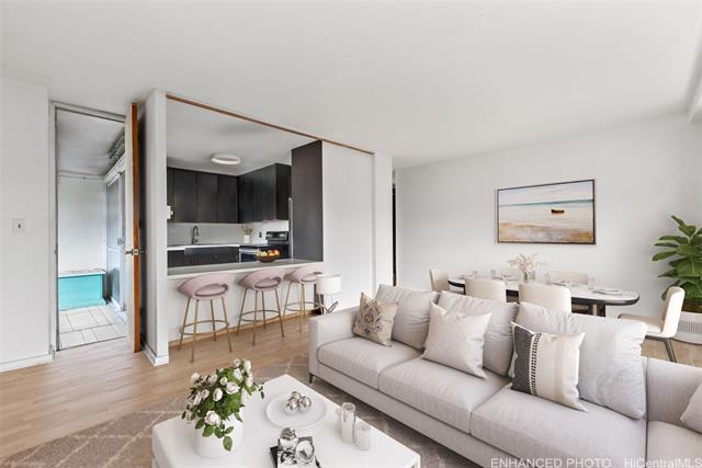- PREFERRED CORNER/END UNIT WITH 2 COVERED PARKING STALLS! Situated in the heart of Honolulu, don't miss this RARELY AVAILABLE 2 bed/1 bath unit in Queen Emma Gardens. This bright and breezy unit features hardwood flooring, efficient floor plan and additional windows for maximum natural light. Relax on your private lanai and soak in the beautiful city views. Enjoy amazing amenities such as a swimming pool, children’s wading pool, Tea Houses, playground, BBQ areas, 24-hr security, and more! Conveniently located near Downtown Honolulu, restaurants, shopping and entertainment. Don’t miss this fantastic opportunity! A few photos have been virtually staged/enhanced.
