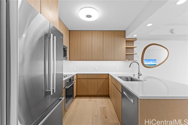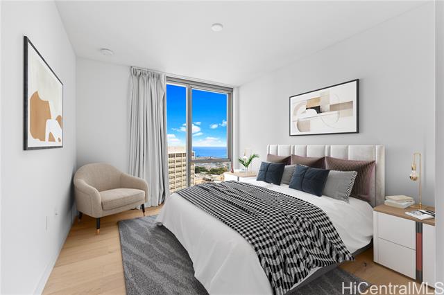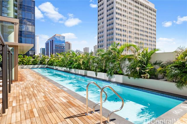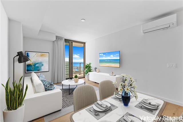 - Welcome to Sky Ala Moana West! Experience elevated island living in this stunning high-floor 1-bedroom, 1-bath residence with one parking stall. Enjoy sweeping ocean and Diamond Head views from your private lanai. Perfectly situated just steps from Ala Moana Shopping Center, premier dining, grocery stores, and the beach park, this contemporary home offers unmatched convenience and comfort. Resort-style amenities abound unwind in two spas and saunas, relax by the poolside cabanas, host gatherings in private dining rooms and BBQ pavilions, or stay active in the large fitness center, outdoor workout area, and dog park. Families will love the playground and lush open spaces designed for modern island life. Live, play, and thrive in the heart of Honolulu at Sky Ala Moana West.