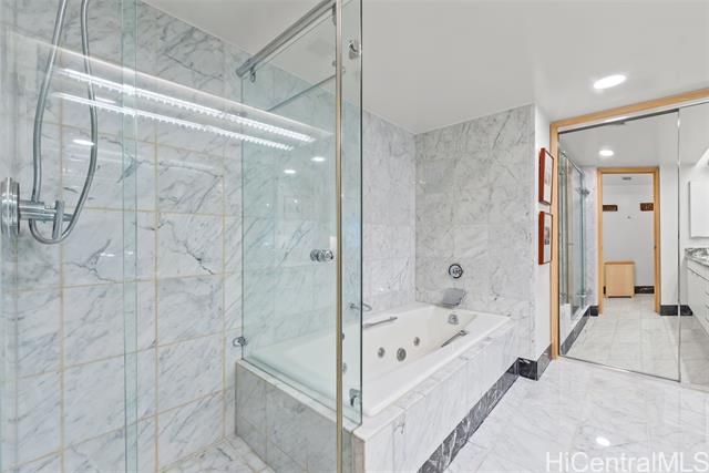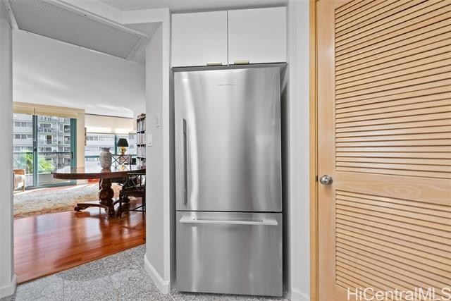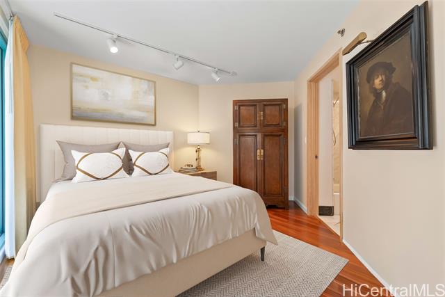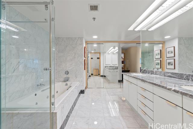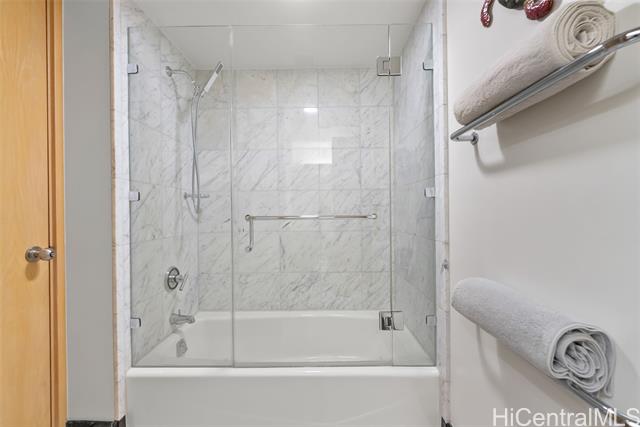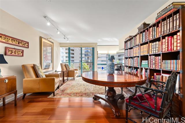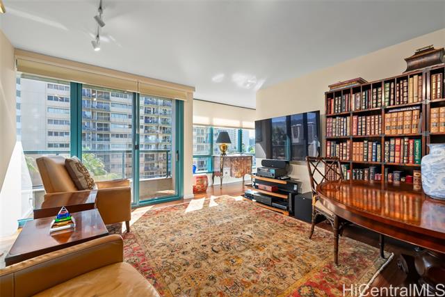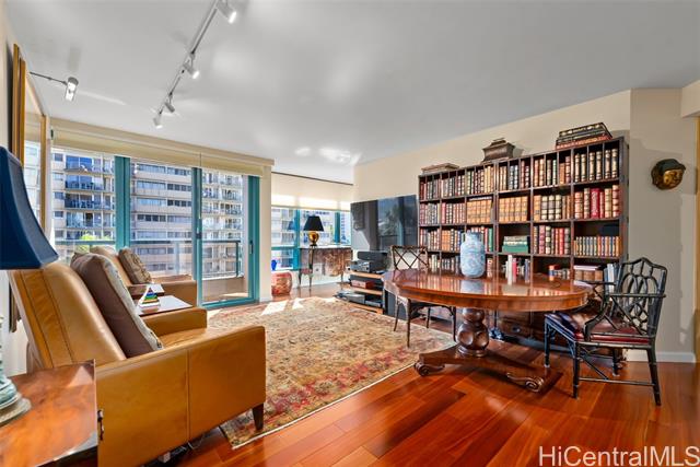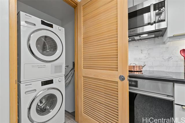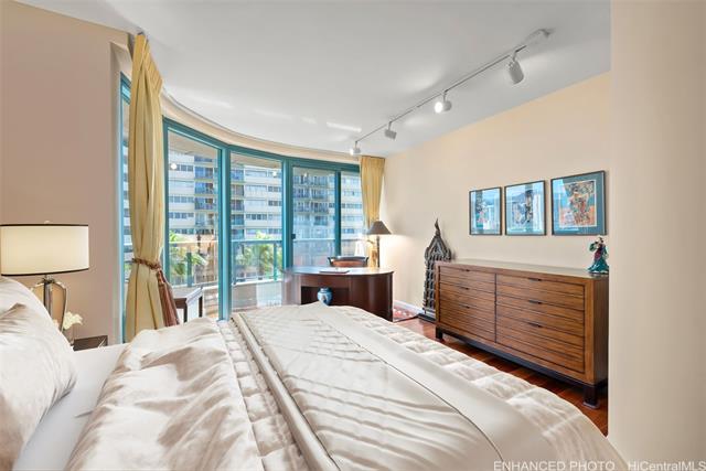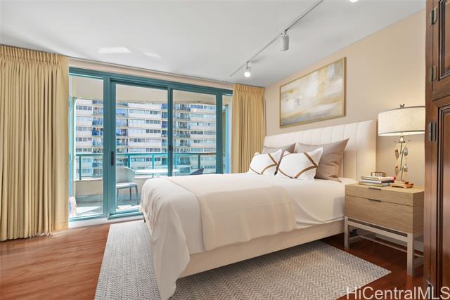 - Waikiki Landmark 907 combines thoughtful luxury upgrades w/ a warm sophisticated aesthetic. Rich hardwood floors guide you through a spacious open layout that feels both elegant & comfortable, creating an effortless flow from the foyer into the main living areas. Every detail has been refined for longevity style and ease of living. The kitchen features premium appliances including a GE Cafe wall oven, Miele cooktop, Paykel refrigerator, Bosch microwave, and stacked Miele washer & ventless dryer all complemented by a striking Calacatta marble backsplash. Energy efficient LED lighting & Energy Star appliances keep electricity costs low even with AC running. Bathrooms showcase restored marble surfaces, polished floors, refreshed countertops, and a newly regrouted shower. New zoned AC systems in the living room and guest suite along with a rebuilt primary bedroom unit to ensure consistent cooling throughout. Designer touches include Hunter Douglas Duette shades, brass alabaster foyer sconces & refined LED track lighting. Residents enjoy the full suite of amenities, including a swimming pool, updated fitness center, 24 hour security, & guest parking. Schedule a showing today!