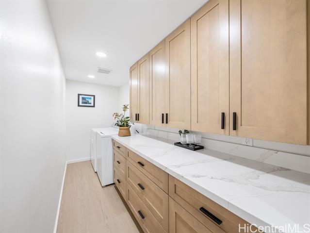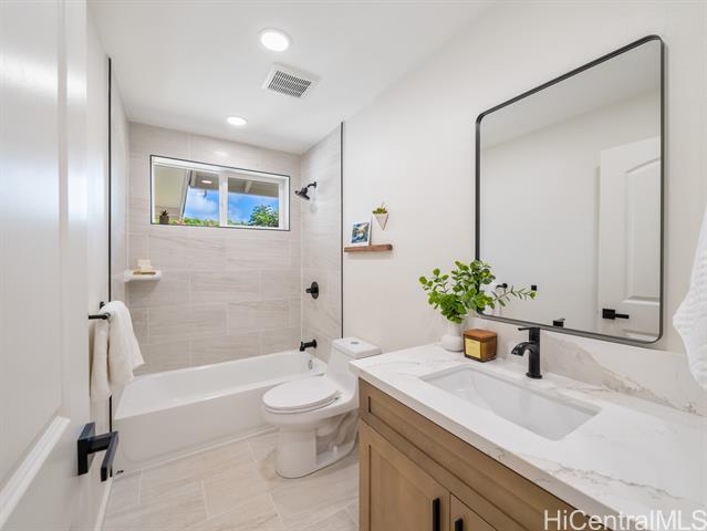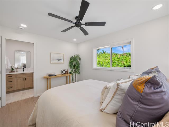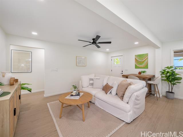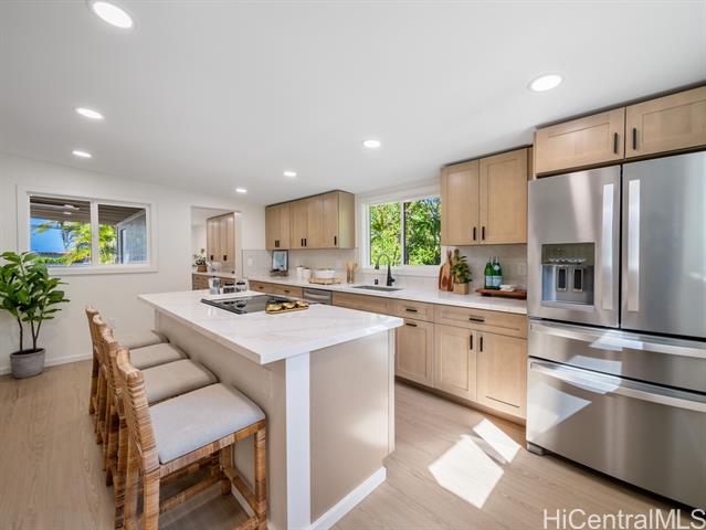 - Wake up to the rhythm of the North Shore in this freshly renovated Haleiwa hale. Thoughtfully redesigned from top to bottom, this single-level 4BD/2BA home blends soft natural tones, warm wood finishes, and open living spaces that invite connection and calm. The kitchen, with its sleek island, quartz counters, and warm wood cabinetry, anchors the home for everyday life and weekend gatherings alike. Spacious bedrooms offer serene views of tropical greenery, while the primary suite features a stylish en-suite bath with walk-in shower. Step outside to enjoy gentle trade winds, a private yard framed by palms, and space to relax after a surf session or day in town. With a 2-car carport, large driveway, and easy access to Haleiwa’s beaches, cafes, and local markets, this home feels like modern island living done right.