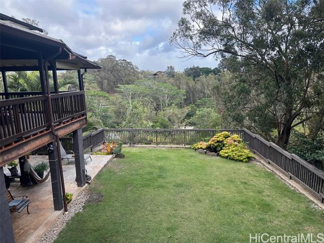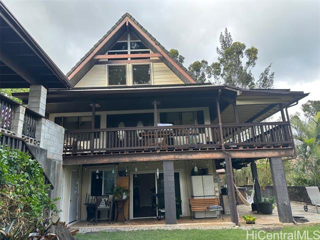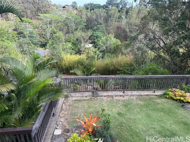 - Showing by appointment only. Gated community. Very similar to Pupukea kind of ambience. A frame house. Upstairs primary suite is redone. Quite spacious and open feeling with vaulted ceiling and many windows bring in light to inside. Newly painted. Citrus trees in lower terrace. Wrap around balcony offers peaceful view, surround with greenery. Very very private and tranquil. No showings until first brokers open Dec 10th, 2025.