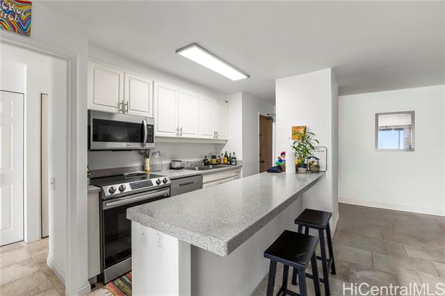 - Beautiful, extra-large 1-bedroom residence in Discovery Bay’s Endeavor Tower (Ewa side). Unit 2508 has been tastefully remodeled with a new kitchen, updated bath, elegant tile flooring, and an enclosed lanai. Situated on the cool, quiet mountain side of the building, this home offers comfortable island living with the convenience of Waikiki. Features include a full kitchen, in-unit washer/dryer, and one assigned parking stall. Enjoy amenities: pool, spa, sauna, fitness center, BBQ areas, 24-hour security, and full-service management. Wi-Fi, basic cable, hot water, sewer, and AC chiller are included in the maintenance fee. Prime West-End Waikiki location close to Ala Moana Center, Ala Moana Beach Park, and world-class dining and shopping. Don’t miss this opportunity – call for your showing today! The unit is 96.893% fee simple with the AOAO holding both the right and obligation to acquire the remaining 3.107% leasehold interest by December 31, 2039. Lease rent is $37.87/quarter or $12.62/month.