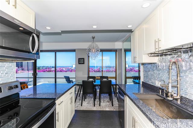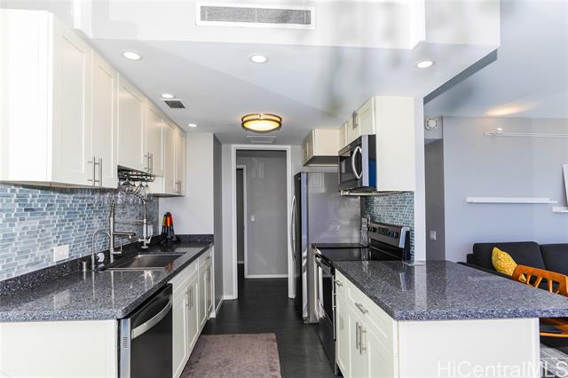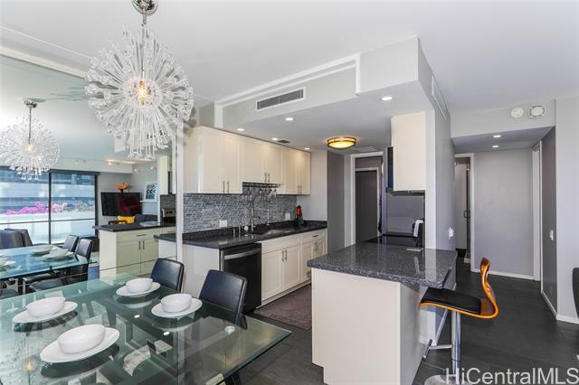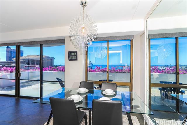 - This Harbor Square suite is more than a home—it’s a lifestyle. Featuring breathtaking Honolulu Harbor & City Views from an expansive wrap-around 681 sq.ft. private deeded lanai – perfect for indoor/outdoor entertaining and enjoying Hawaiian sunsets. Imagine enjoying your favorite beverage on the lanai as the sky transforms with the colors of a perfect Hawaiian sunset, all while enjoying the comfort of a fully modernized, smart-enabled residence. Experience the best of Downtown Honolulu living in this rarely available Harbor Square 09 corner unit, fully upgraded and thoughtfully remodeled to combine modern convenience with island charm. Modernly remodeled throughout include tile flooring, enlarged showers, updated cabinetry, sinks, and plumbing with isolation valves on each stack new open design kitchen with contemporary finishes. Plumbing improvements include isolation valves on all four main lines allowing unit-only shutoff. Smart Home Integration, Samsung SmartThings hub controls Z-Wave devices (lights, locks, motion sensors, and more). Newly installed Air Conditioning System, ducts sealed by PurAir, plus A/C sump pump and UV light for enhanced efficiency.