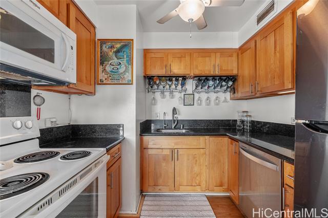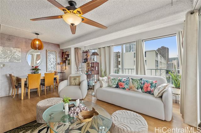 - Welcome to Sunset Tower #1404, a cool and quiet corner residence offering spectacular panoramic ocean views stretching across Ala Moana Center, Magic Island, and beyond. Enjoy Friday night fireworks right from your spacious, open-covered lanai, an extended living space that spans the entire ocean-facing side of the home. This well-maintained 2-bedroom, 1.5-bath unit includes one assigned parking stall and a private storage locker for added convenience. The low maintenance fees, makes this a rare find in the heart of Ala Moana. Inside, you’ll appreciate numerous upgrades completed after the unit was purchased in 2011, along with the option to include all furnishings—perfect for a turnkey move-in or investment opportunity. Ideally situated near Waikiki, Ala Moana Shopping Center, world-class restaurants, beaches, and entertainment, Sunset Tower #1404 offers the ultimate blend of comfort, convenience, and island lifestyle. Don’t miss this chance to own a beautiful ocean-view home in one of Honolulu’s most desirable locations! Live the Lifestyle you always dreamed about! Seller may require to rent back for a couple months in 2026.