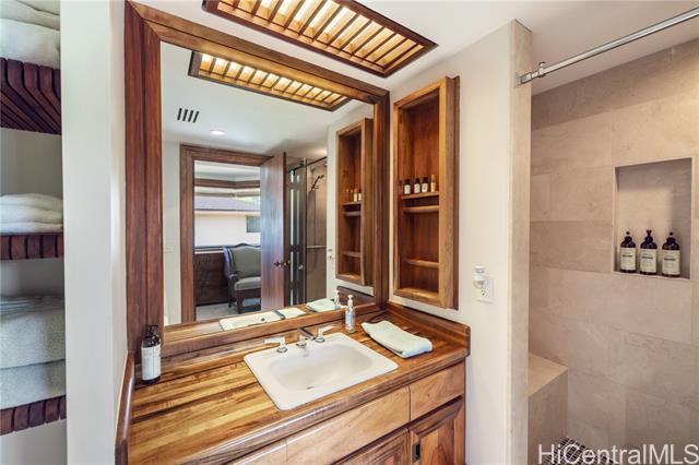 - This turnkey luxury residence is a rare offering, now enhanced with further upgrades. Encompassing more than 4,000 sf of seamless indoor-outdoor living, the home sits at the foot of Diamond Head in the exclusive oceanfront enclave of Kuu Makana at Diamond Head. Within this private, gated community, the 3-bed + den/3-bath property exemplifies island elegance & refined sophistication. Rich, handcrafted woodwork flows throughout, elevating its timeless aesthetic. The gourmet kitchen is equipped for the discerning chef, showcasing Sub-Zero & Wolf appliances, custom Koa cabinetry & premium countertops. Generous living spaces incl a fireplace, creating a warm & tranquil setting. Expansive bedrooms offer peaceful retreats w/custom shelving, stunning Koa doors, and the convenience of an elevator. Every detail reflects exceptional craftsmanship and thoughtful design. Sustainable feats incl 34 PV panels, 3 TESLA Powerwalls and EV charger. Also features a large 2-car enclosed garage. With unparalleled ocean views, a premier location, and impeccably curated interiors, this home stands alone. This is a rare chance to own a piece of paradise in one of Hawaii’s most coveted coastal communities.