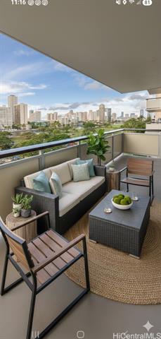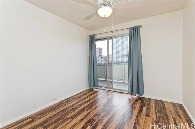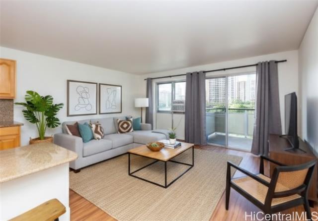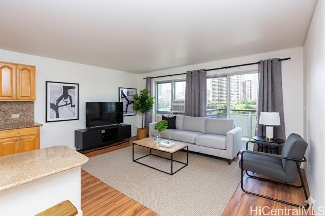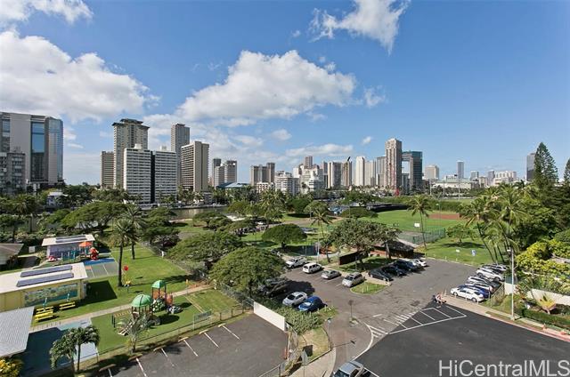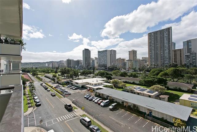 - Coveted 2 bedroom, 1 bathroom condo located in Ala Wai Cove. The unit features a open concept living, dining, and kitchen with unobstructed views of Diamond Head on the left and the Ala Wai Canal, the Ala Wai Golf Course, and the Ala Wai Park from the 93 sqft lanai. The kitchen features wood cabinets, granite countertops and koa laminate flooring in the living room and bedrooms. Centrally located to shopping, restaurants, and entertainment. Pet friendly and 1 assigned covered parking.