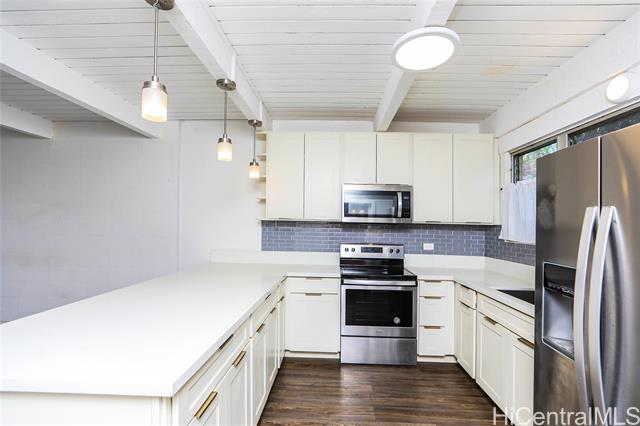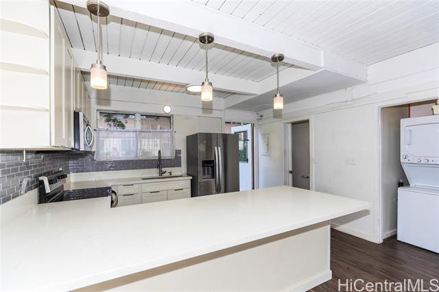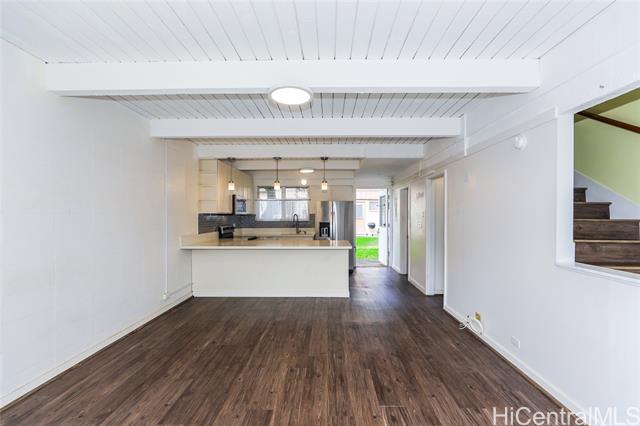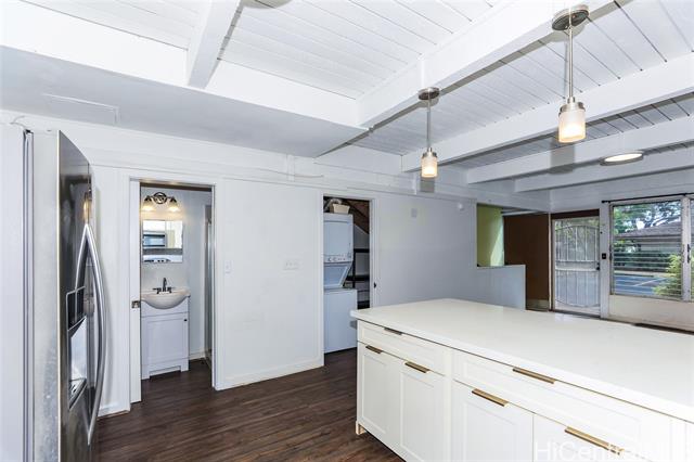 - RARELY AVAILABLE – This unit includes two parking stalls! Beautifully remodeled multi-level two-bedroom, two-bath home. Features a window air conditioner in one bedroom and ceiling fans with light fixtures in both. Enjoy newer flooring throughout, a renovated kitchen with updated cabinets and solid surface countertops, and modern lighting — including pendant fixtures above the kitchen counter. Both the upstairs and downstairs bathrooms have been stylishly upgraded for a fresh look. This older townhome community is close to Kahala Mall, Waialae Beach Park, and other dining restaurants. Seller is a licensed real estate agent in the State of Hawaii.