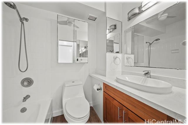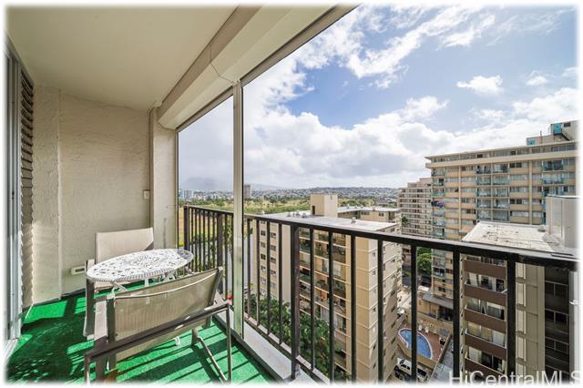 - Studio Unit with Golf Course and Cityscape Views! Conveniently located in Waikiki’s coveted and secure Fairway Villa building, this 364sqft residence offers an upscale lifestyle with access to desirable amenities, such as a rooftop pool, firepit, BBQ, covered lounge areas, and a sauna. Situated on a high-floor, the sundrenched unit immediately charms with wood flooring, kitchen with stainless-steel appliances, in-unit washer and dryer, and a large living space with sliding glass doors to the private balcony. The balcony comes with motorized storm shutters and remote control. Perfect for relaxation, the outdoor space boasts scenic views of the ocean, the golf course, and the glittering cityscape. Sized for versatility, the unit may be creatively arranged to accommodate both weekend entertaining and daily living. Set-up a cute bistro table for dining and create a media area with a wall storage unit. Other features include covered, assigned parking (secured), near shopping, restaurants, and much more! Call for a private tour! $109 for Special Assessment until the end of 2043 is for the completed waste waterline replacement project. $62 is for the cable and internet.