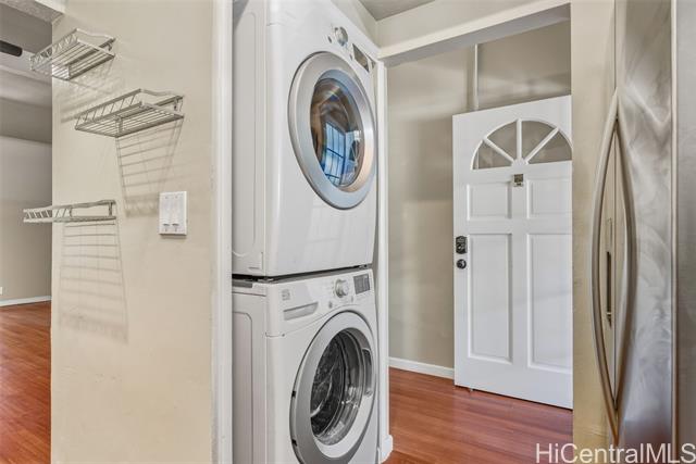 - Only active listing at Hokulani in Kailua- in the heart of one of Oahu’s most coveted beach communities. Set on the breezy second floor, this light-filled residence invites you in with vaulted ceiling. This well-maintained 2-bedroom, 2-bathroom condo offers comfort, functionality, and easy access to everything Kailua Town has to offer. Full size washer and dryer in unit, stainless steel appliances, granite countertops in kitchen, laminate flooring. Enjoy the breeze on your private lanai or cool down with your window AC unit when the trade winds settle. There’s also a bonus storage closet on the lanai. One covered parking stall, guest parking and extra street parking. Great location within the community. Enjoy close proximity to local dining, shopping, recreational options, farmers markets, Whole Foods, Target and much more. All within one mile of the beautiful shores of Kailua Beach. Enjoying a day at the beach or staying close to home, everything you need is right here. This pet-friendly complex includes BBQ areas, a playground. Easy access to highways that take you anywhere on the island.