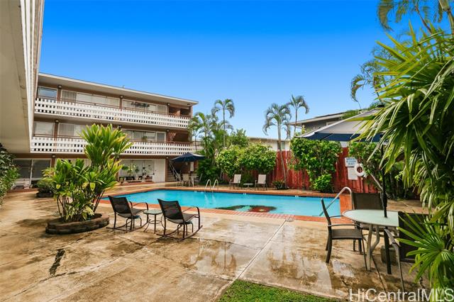 - Great move-in ready home for buyers or rent ready for investors! Area rental rates range from $1250 to $1750. This spacious and sparkly clean studio was recently renovated with new cabinets and quartz counters in the kitchen, new bathroom lighted vanity mirror, new laminate flooring, and paint throughout. The window AC and appliances are newer. Amenities in this PET FRIENDLY building include garden courtyard with pool, community laundry, and site manager. Just a short distance to the University of Hawaii at Manoa, Punahou & Maryknoll schools, Kapiolani Medical Center, and Shriners Children's Hospital. Just a short drive to Iolani School, Waikiki, Ala Moana Center/Park/Beach, Downtown Honolulu, and endless dining, shopping, and entertainment options. Bus and H-1 access within a few blocks. This building has 100% replacement value hurricane insurance, no assessments, and no litigation. This unit DOES NOT come with parking.