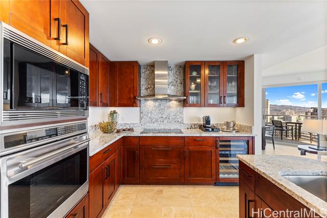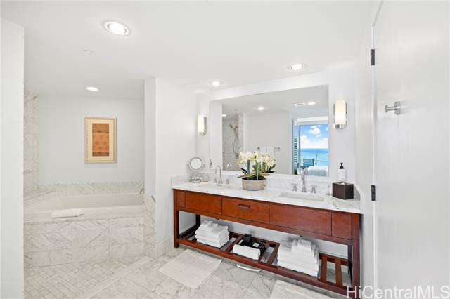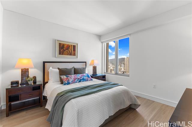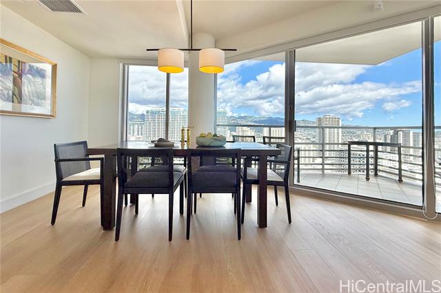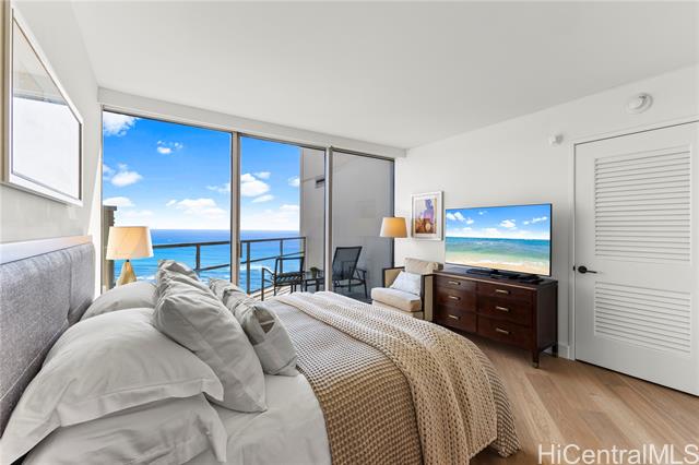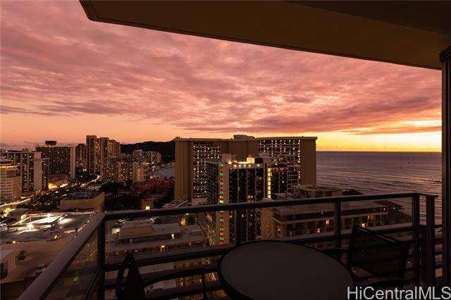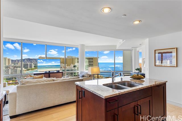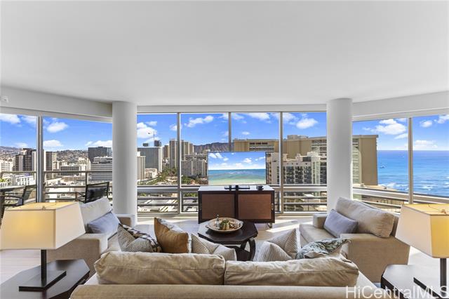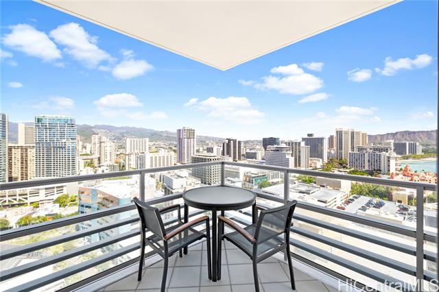 - Just minutes from Waikiki Beach, this elegantly upgraded corner unit offers true resort-style living. Enjoy convenient access to a wide variety of nearby restaurants, as well as on-site dining and room-service options available through the hotel. Take in sweeping panoramic views of the city skyline framed by the mountains, Koko Crater and Koko Head in Hawaii Kai, Diamond Head, and the iconic Pink Palace with Waikiki Beach as its backdrop. Relax on two separate lanais: one off the primary bedroom facing the ocean and the other off the living-dining area with beautiful mountain views. The residence features a well-equipped kitchen, generously sized bathrooms, ample storage—including a walk-in closet in the primary bedroom—and thoughtful details throughout. Recent updates include brand-new engineered hardwood floors, adding a gentle sense of warmth and comfort throughout the home. It is a place that truly soothes the heart, reminding you how important the floor can be. New modern roller shades are designed to maximize the stunning 180-degree views unique to this corner unit. Experience luxury island living at its finest.