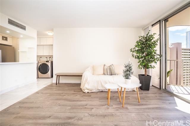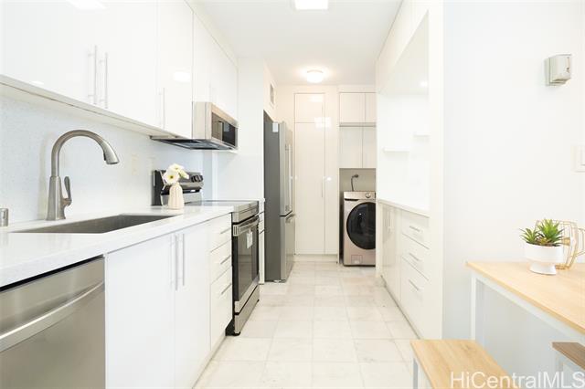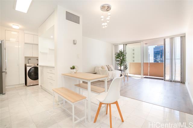 - Location! Location! Near Don Quijote, Ala Moana, Walmart, Sam's Club, Palama Market, Target, Ross and many other shops and eateries. Large 1,086 sqft interior and 149 sqft lanai with peek-a-boo ocean views. OPEN KITCHEN with upgraded marble floors and washer/dryer in unit. Secured and well managed building with guest parking. Amenities include pool, large rec area, exercise room, sauna, BBQ, ping pong table, pool table, workshop and car wash area. Maint fee includes cable, internet, hot water, sewer, water.