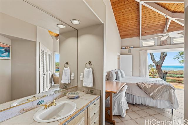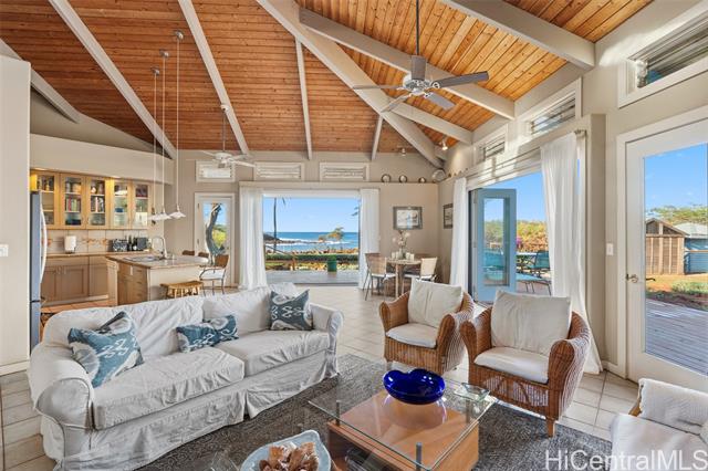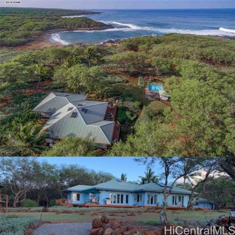 - Enjoy spectacular sunsets and ocean views from every room in this beautiful custom home on 5 acres of level oceanfront property, fenced and gated for maximum privacy. Stunning Dixie Maru Bay with sandy beach just steps away. 2 primary suites with their own full baths. 3rd bedroom with full bath and kitchenette could be used as studio guest quarters.4th bathroom for guests. Open floor plan.Woodframe sliding pocket doors allow for unobstructed views of the ocean from 2 sides. Enjoy your morning coffee on the spacious deck, also perfect for entertaining. Large 2 car garage could also be used as a workshop. Refreshing pool, cabana and shower provide complete privacy.