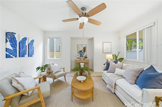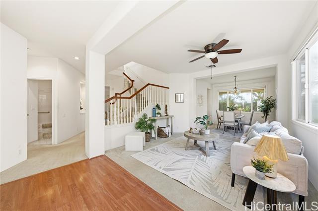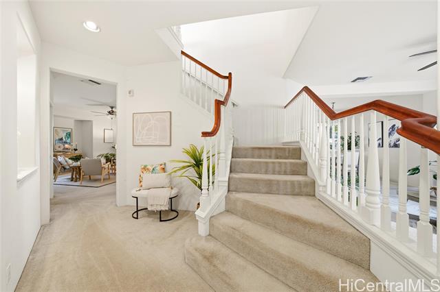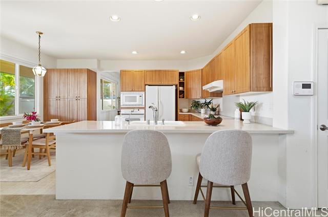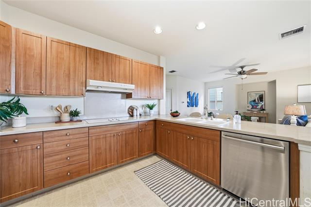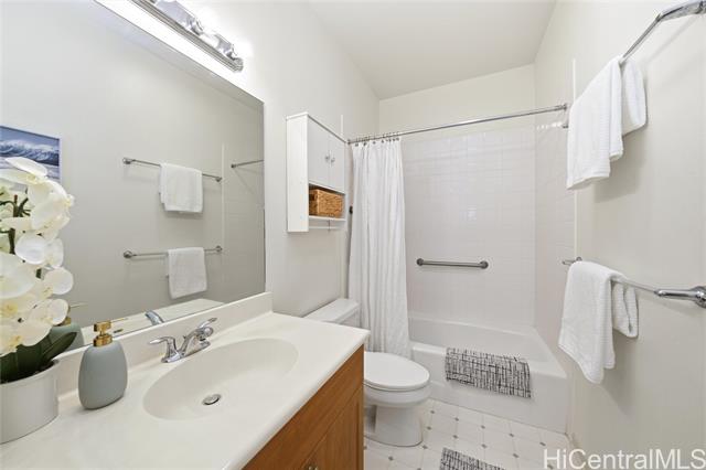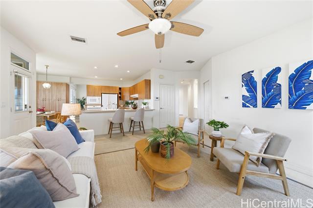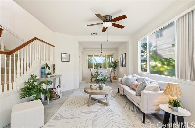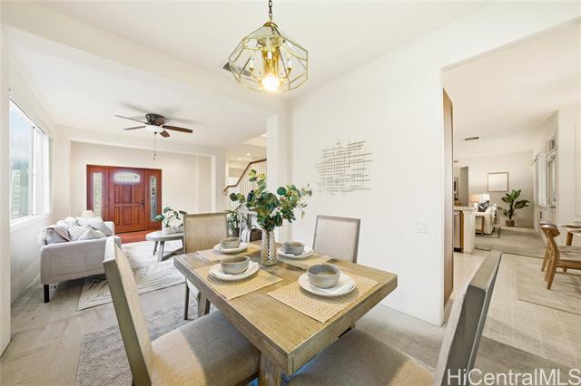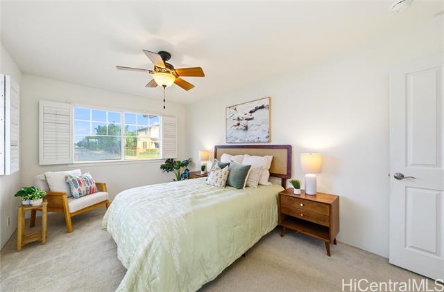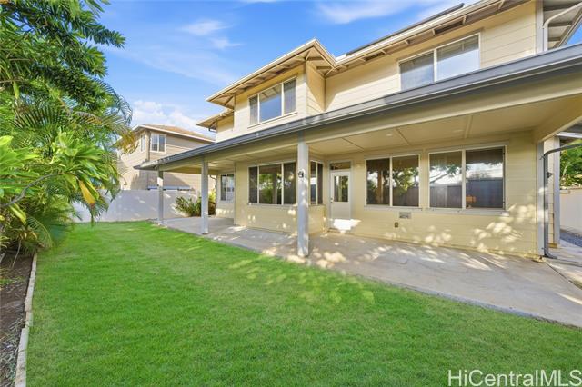 - Welcome to this spacious five-bedroom, three-bathroom single-family home in Ewa by Gentry Woodbridge. Step inside to an open and inviting floor plan with generous living areas filled with natural light. With five bedrooms, including one on the main level, this home provides flexible living options for multi-generational living, guests, or a home office. The primary suite features a spacious layout with an ensuite bathroom and a large soaking tub perfect for relaxation. The home features dual central AC units to keep your home nice and cool all year round while saving on your electric bill with 22 owned solar panels on the NEM program with HECO! The extended covered lanai is perfect for entertaining guests. Located close to the community center, pool, restaurants, shops, and more! Come see all this home has to offer!