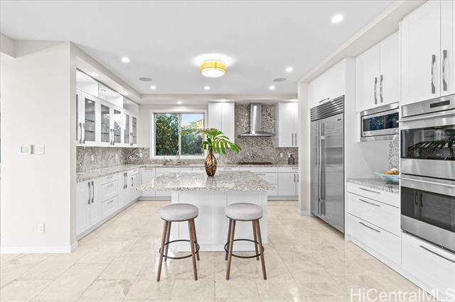 - Enjoy a luxury island lifestyle in this gorgeous Diamond Head residence on Kaimanahila St! Built in 2014, this spacious home offers a thoughtful floor plan of 4 bdrm & 5.5 ba, split A/C, smart-house system & 2-car garage. The main floor features the living rm wi/double height ceilings, fam/media rm, den/library, kitchen & large ensuite bdrm w/2 walk-in closet, living & dining areas open out to a large covered lanai, swimming pool, hot tub, outdoor cabana. High ceilings & expansive windows fill this hm w/natural light, creating a seamless indoor-outdoor flow. A gourmet kitchen offers top-of-the-line appliances, including Sub Zero, Wolf & Studio Becker cabinets. The 2nd floor features a sitting/fam rm opens out to a large lanai w/gorgeous DH & MT vws, a primary suite w/a generously sized walk-in closet & a huge storage rm, lanai & ocn vw, plus 2-ensuite bdrm. There is plenty of rm for fam, friends & flexible living! Located minutes from world-famous beaches, surf spots, Cromwell's Beach, Shangri La Estate, Triangle Park, Kapiolani Park, Waikiki, dining, shopping & outdoor activities. This is a rare opportunity to own a contemporary hm in one of Hawaii’s most beautiful neighborhoods.