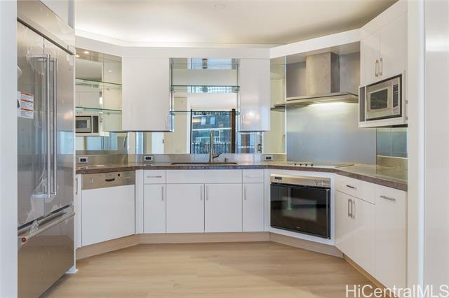 - Priced to sell! Rarely available and highly sought after double unit featuring 2 large primary suites in the prestigious Hawaiki Tower. Beautiful corner end unit with spectacular ocean & city views from every room with the floor to ceiling windows that let in lots of natural light. Enjoy lots of space with this open floorplan totaling over 2000 SF. THREE parking stalls which all have storage cabinets above each stall. Upgrades include new flooring throughout the living, dining, kitchen and bedrooms, interior is freshly painted, and new cabinet doors in the kitchen and bath. Relish in luxury amenities including the heated pool, whirlpool, tennis court, putting green, play area, library & more or head to the sandy beaches at Ala Moana Beach Park across the street. Roam the neighborhood full of shopping, restaurants, coffee shops, Ala Moana Shopping Center, Ward Center and world-famous Waikiki just a mile away. Pet-friendly building known for low maintenance fees. One or more photos have been enhanced.