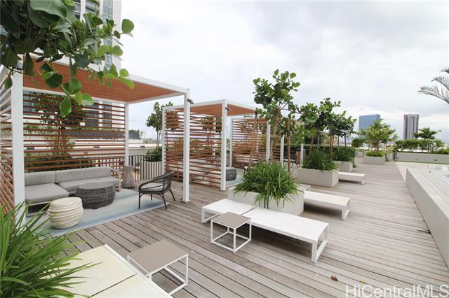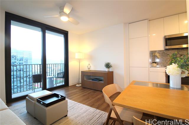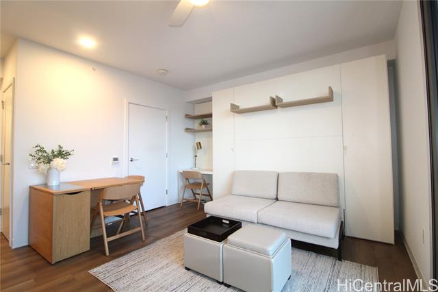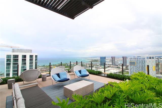 - Become part of the growing Ward Village community in the heart of Kakaako. Live in this furnished high floor unit and wake up to the gorgeous mountain views. Enjoy the afternoon breeze in your own private patio because it is on the cooler side of the building or go up to the unique Skydeck on the 42nd floor to see the sunset. You can even soak in the afternoon sun on the amenity deck with a large swimming pool, jaccuzi, and many private cabanas to relax in after a long day of work. Aalii is within walking distance to many shops, restaurants, and even the beach. This unit comes furnished with a queen sized murphy bed, built in desk, lots of closet space, Bosch appliances, washer & dryer, and so much more. This is truly a place where you can work, live, and play! Don't miss out on this opportunity!