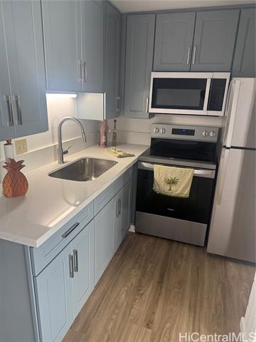 - REDUCED TO SELL!!! Move right in. Sunset Lakeview located in Salt Lake Building B . Totally Remodeled 3 bedrooms(892 sq ft) 2 baths, 1 open Parking right in the front row. Entire unit Painted and popcorn ceiling removed. New Laminate Floors throughout .New Kitchen cabinets, sink, faucet, garbage Disposal ,new stove and Fridge and stone counter top. Both Bathrooms new floor, vanity, toleits , lights, faucets, towel bars and tubs painted. New washer-Dryer in unit. Pet Friendly and a Dog Park. Large Pool. Playground,24 hr. security, exercise room, BBQ Area, and Sauna. Manager on Property. Close to bus lines, military bases, schools, and shopping. Sprinkler system completed and new pipes in entire building and unit. Nice lanai -48 sq ft with large storage closet. Move in or rent.