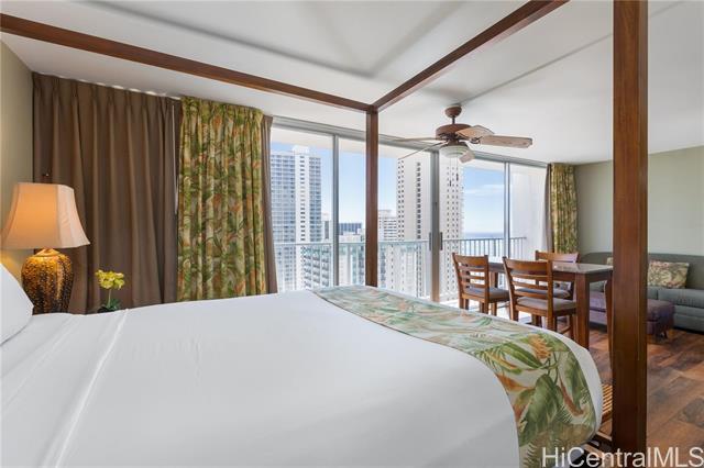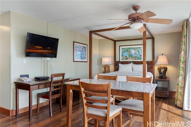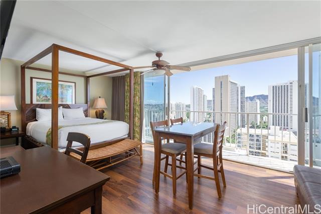 - Rarely available “01” stack ocean view studio in the heart of Waikiki! One of the only several resort/hotel zoned condominiums in Waikiki. Ideal property for both investment and second home. Hotel amenities include rooftop breathtaking ocean view pool, Jacuzzi, Sauna, Penthouse recreation room and Community Laundry Room. Prime location in the center of world-famous Waikiki to all – one and a half block to beach, International Market Place; close to restaurants, shopping and entertainment.