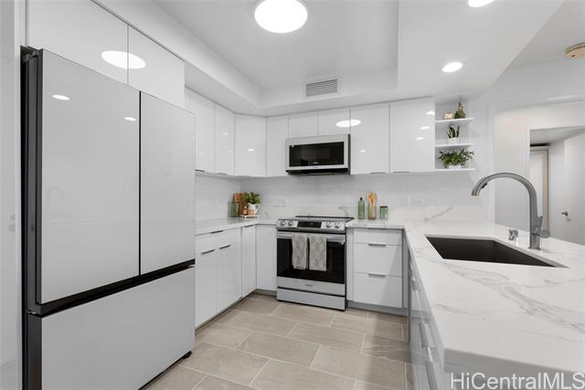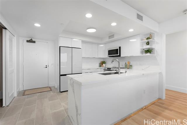 - Enter into luxury at The Watermark Waikiki, where contemporary elegance meets resort-style living. This fully remodeled 2-bedroom and 2-bath condo offers a bright and open layout with floor-to-ceiling glass windows in the living room, filling the space with natural light and framing stunning ocean, marina, garden, and city views. The sleek, modern kitchen boasts quartz countertops, high end appliances, and lacquered cabinetry, while spa inspired bathrooms feature walk-in showers and designer finishes. Enjoy world-class amenities on four acres of lush tropical gardens, including a heated lagoon-style infinity pool, spa, sauna, state-of-the-art gym, BBQ pavilions, and 24 hour front desk resident specialist services. With 2 parking spaces and an in-unit washer and dryer, convenience meets sophistication in this move-in-ready retreat. Located near Ala Moana Beach, premier shopping at the Ala Moana Mall, and Waikiki's vibrant dining scene, this home offers a perfect blend of tranquility and excitement. Your dream lifestyle awaits-schedule a private showing today!