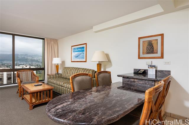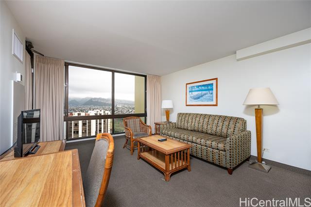 - Legal Short-Term Vacation Rental at Waikiki Sunset! Fully furnished 1-bedroom, 1-bath corner unit with 1 unassigned covered parking stall on the 29th floor, offering city and ocean views. Features private lanai, ideal for indoor-outdoor island living. Unit is part of the Aston Waikiki hotel rental pool and holds a Non-Conforming Use Certificate (NUC) allowing legal daily or weekly short-term rentals, making it perfect for investors or a vacation home with income potential. Kitchen is fully equipped for immediate occupancy or guest use. AOAO has completed major upgrades including sprinkler installation and AC fan coil replacement, with ongoing improvements. Resort-style amenities include pool, gym, BBQ, recreation deck, hospitality lounge, conference room, community laundry, on-site minimart, and 24-hour security. Prime Waikiki location near Waikiki Beach, Kapiolani Park, Diamond Head, Honolulu Zoo, shopping, dining, and bus lines. Maintenance fee includes electricity, central AC, water, sewer, hot water, and basic cable. Special assessment $263.57/month (01/2025–12/2028) for fan coil project. Move-in ready and turnkey.