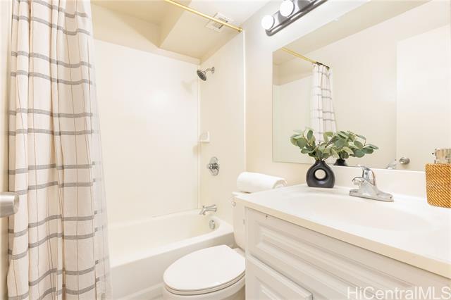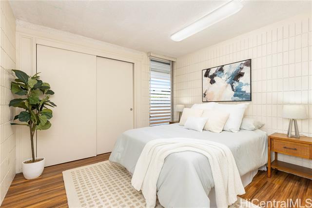 - Looking for a spacious 3-bed residence that’s move-in ready under 450k? This home has been thoughtfully upgraded with LVP flooring in the living spaces, refreshed kitchen granite countertops and shaker cabinets, and an upgraded bathroom vanity with quartz. Both tubs were reglazed to bring a clean, renewed feel throughout. The extra-large lanai comes with its own storage closet, a rare second-floor feature in this building, and provides a peaceful area to enjoy outdoor moments without leaving the comfort of home. A full-size washer and dryer add everyday convenience, concrete walls create a peaceful and private environment, and the security screen door welcomes cooling island breezes. Two covered tandem parking stalls, a secured building with on-site security, and amenities including a pool, recreation deck, fitness center, sauna, game room, and dog park round out the features of this community. All of this is conveniently located moments from daily needs, including freeway access, Moanalua Shopping Center, parks, and desirable schools. Close to Pearl Harbor, Fort Shafter, Tripler and Kaiser medical centers, and the airport, this home has everything you need within easy reach.