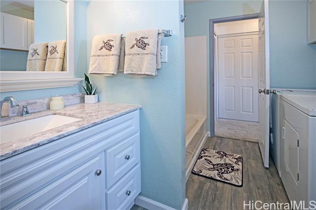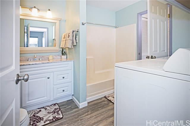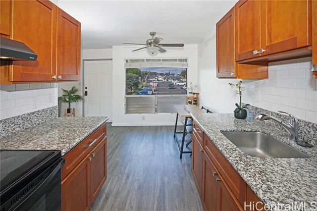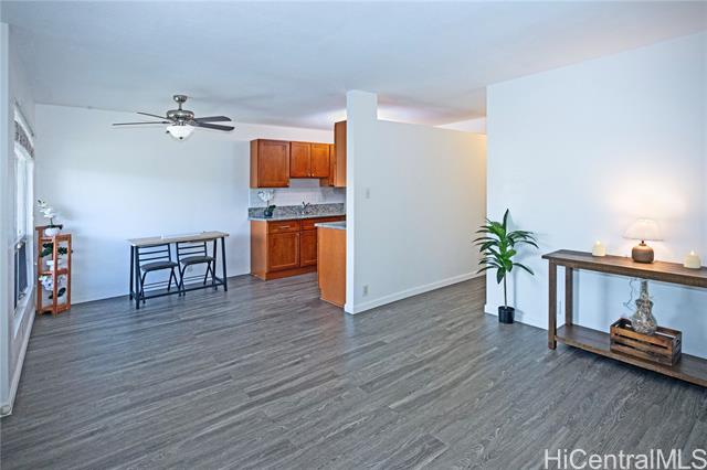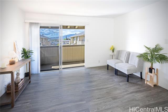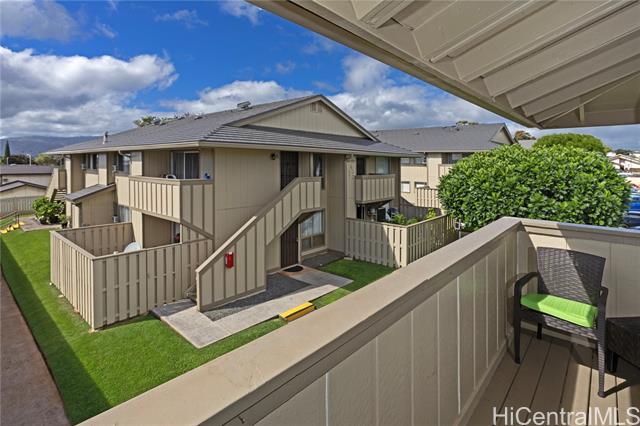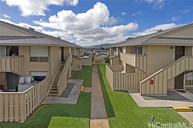 - Affordable, VA Approved, Pet-Friendly Living in Highly Desirable Waipio Gentry. Discover the best of Central Oahu living in this smart ownership alternative to renting in this pet-friendly upstairs corner unit at Kauhale – Rainbow Series offering exceptional natural light, refreshing cross-winds, and added privacy with no neighbors above. A move-in ready 2 bedroom, 1 bath, 750 sf of interior space unit with a cozy lanai. Enjoy an updated kitchen with wood cabinets, granite-style counters, laminate flooring, and an open living room layout. Conveniently located near Costco, Waipio Shopping Center, Foodland, Central Oahu Regional Park, Waikele Shopping Centers, and easy access to H-1/H-2 facilitating quick commuting access to Schofield and Pearl Harbor, making this location one of Central Oahu’s most desirable. One assigned parking stall (#46) plus ample guest (13) stalls & street parking. Low HOA fee includes water & sewer. Don’t miss this opportunity to own in a well-maintained, lower-fee complex known for strong demand, convenient access to neighborhood schools, and community pride. Well-suited for owner-occupants seeking comfort, value, and location in one package. Move-in ready.