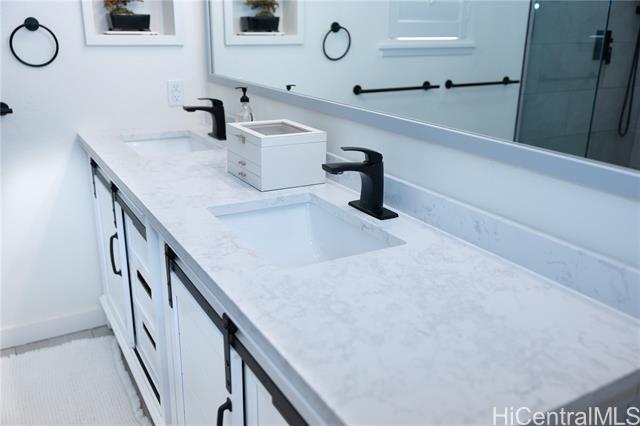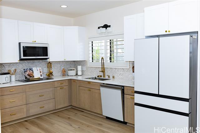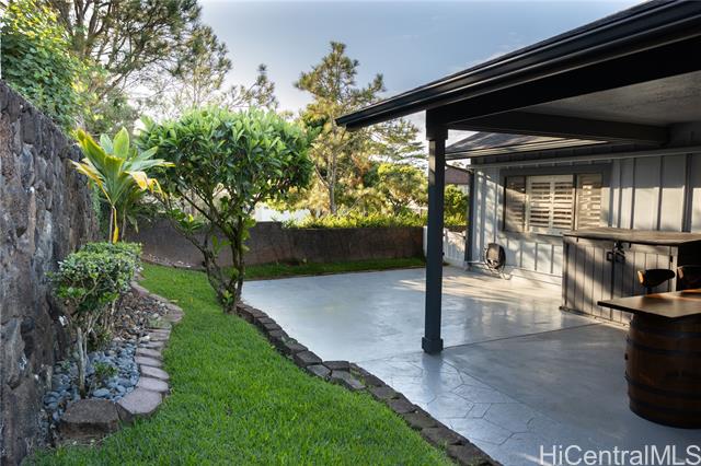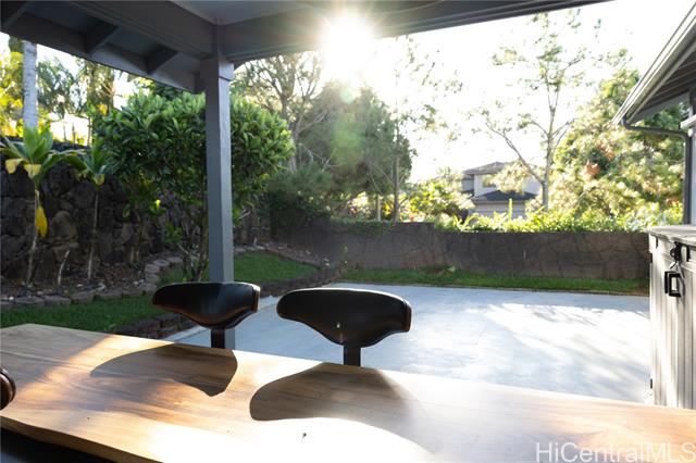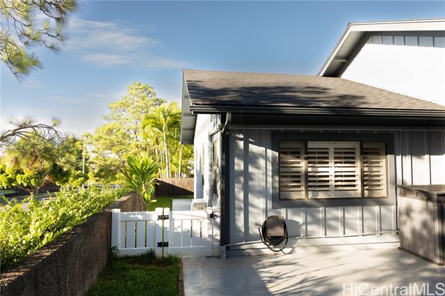 - Just a short walk to Mililani Elementary and Middle Schools and Rec Ctr 7. This single story home has a versatile den, tastefully renovated with modern comfort, island charm, with true family living in mind. As you step inside, you're greeted by an elegant dining area and a stunning brand new kitchen - complete with a spacious island, corner coffee bar, and beautiful finishes throughout. The kitchen flows seamlessly into a large family room, highlighted by vaulted ceilings. The den is a thoughtfully designed as a multi-purpose room featuring custom cabinetry and a Murphy bed. Perfect as a home office, laundry room, or guest retreat - flexible space truly adapts to your lifestyle. Down the hallway, you'll find two comfortable bedrooms and a full bathroom with double sinks, ideal for family or guests. The primary suite is a true sanctuary. Custom closets, nightstands, and dressers fill the space with luxury and organization. The ensuite bathroom features a large walk-in shower and dual sinks. Step outside to a spacious, partially covered patio, perfect for entertaining friends, hosting family gatherings, or simply enjoying the cool Mililani breezes.