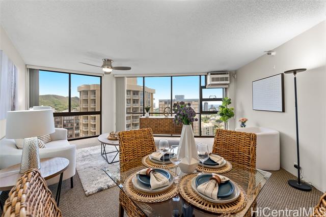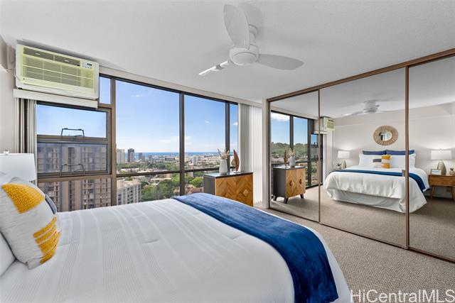 - Located in the lush Nuuanu Neighborhood, Craigside is a beautifully maintained building with amenities galore. This spacious, high floor (almost 800 sf)1 bedroom, 1 bathroom unit offers panoramic views of ocean, city and downtown Honolulu with historical buildings and more. Bright, airy and spacious home that is close to revitalizing downtown, easy access to Pali Hwy, Chinatown, hospitals, grocery stores and schools. Assigned parking is on the basement floor and close to the elevator for ingress and egress. Craigside, a pet friendly building, has 2 swimming pools and tennis courts in a garden like setting, fitness center, security guards and resident manager.