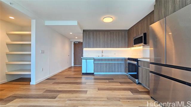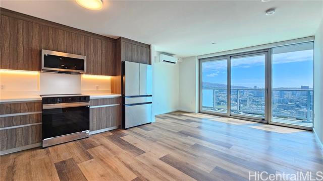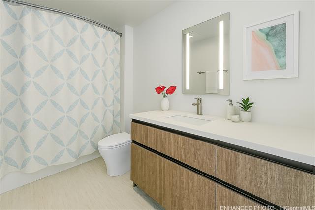- Experience modern island city living with this one-bedroom residence in the preferred Rycroft Tower, showcasing a private lanai and unobstructed Diamond Head sunrise views. Meticulously upgraded with nearly $18,000 of premium enhancements, this home offers refined comfort at every turn. Upgrades include luxury vinyl plank flooring throughout and a designer kitchen appointed with quartz countertops and a full-height backsplash. For effortless living, enjoy motorized roll-down shades, floor-to-ceiling windows that bathe the space in natural light, and a quiet split AC system for year-round comfort. Residents of The Park on Keeaumoku enjoy access to a curated resort amenity deck—highlighted by a massive infinity pool and spa, private BBQ pavilions, a movie theater, co-working and media rooms, a fitness center with yoga room and sauna, plus 24/7 security. Additional conveniences include secured covered assigned parking, over 25 EV charging stations, bike storage, and a pet-friendly environment. This beautifully upgraded retreat blends modern design, lifestyle convenience, and iconic island views.