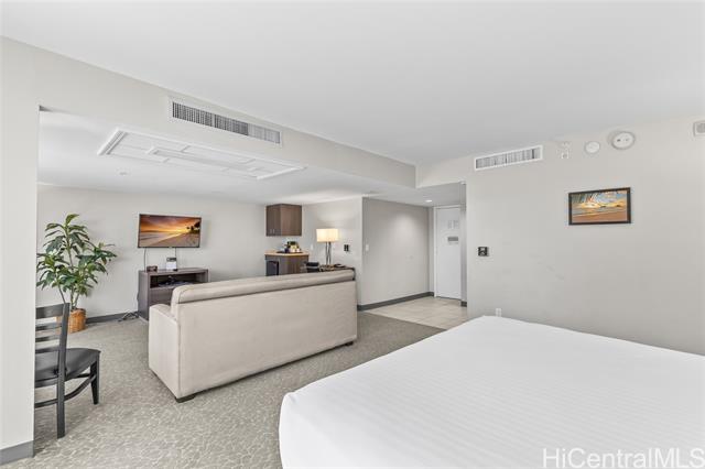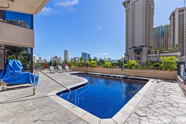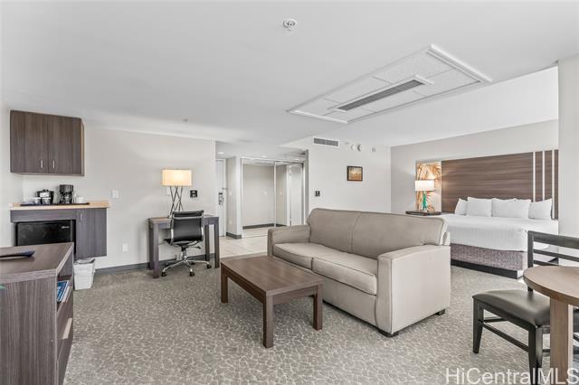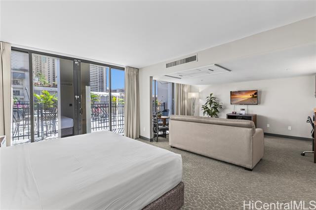 - Palms at Waikiki #206 offers a rare opportunity to own a legal short-term rental in one of Waikiki’s premier condo-hotel destinations. This extra-large studio—approximately 550 sq. ft. of interior space—stands out with its generous layout and the added benefit of a dedicated parking stall, an uncommon advantage for STR properties in Waikiki. Situated on the 2nd floor (equivalent to the height of the 5th floor), this move-in-ready unit provides direct access from the lanai to the resort-style swimming pool and fitness room, creating a seamless indoor-outdoor experience for residents and guests. Perfect as an investment property or personal retreat, the unit features central air conditioning and is fully furnished for immediate use. All utilities are conveniently included in the maintenance fee, covering electricity, internet, hot water, sewer, and central AC—simplifying ownership and enhancing value. With its prime location across from Hilton Hawaiian Village and just moments from Waikiki Beach, shopping, dining, and island activities, this unit presents an exceptional blend of convenience, flexibility, and income potential in a highly desirable condo-hotel setting.