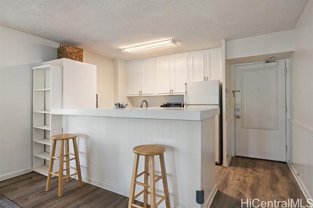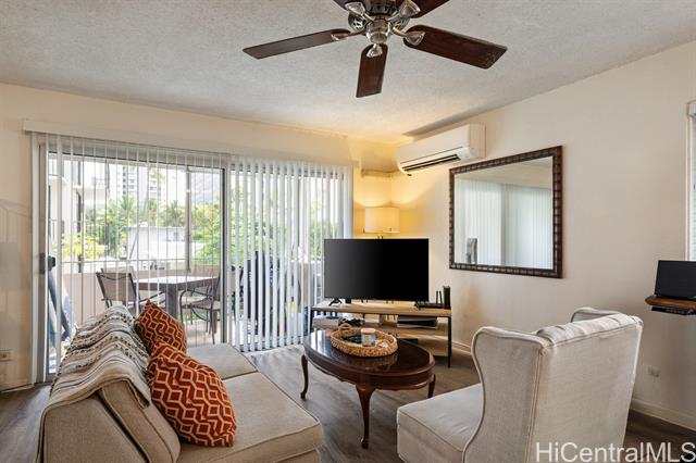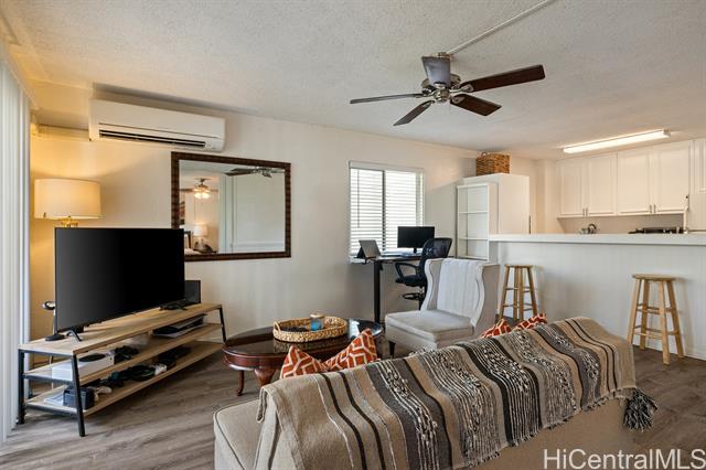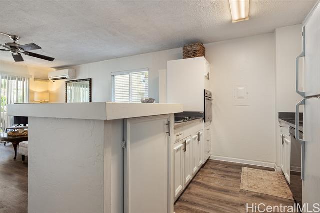 - Own your slice of paradise with this renovated 1 bedroom, 1 bathroom leasehold condo in the heart of Waikiki! 411 Kaiolu is a hidden gem, and it's pet friendly! Oven and glass cooktop, LVP flooring, fresh paint throughout, and blinds in each room done in Aug 2023. The unit also has a split AC, ceiling fans, good closet space, and it's an end unit with lots of light! Unit comes furnished. Enjoy the sunny pool and community laundry. This is a boutique building in Waikiki but on a less busy side street, it's convenient to walk to Waikiki beaches, shops, restaurants, and many bus lines. The long land lease allows for a 15- or 20-year mortgage. May be possible to rent parking nearby. Request at least 48 hours' notice for showings due to tenants.