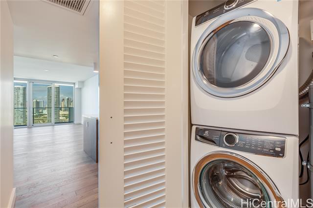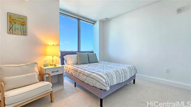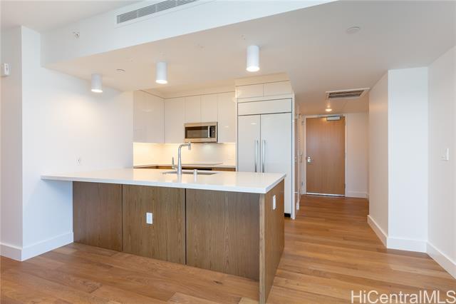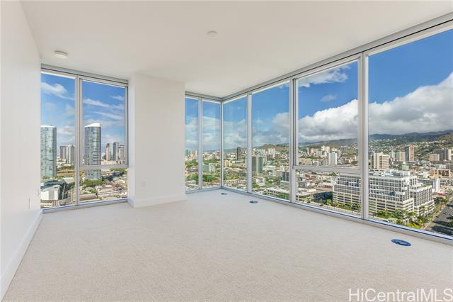 - Azure Ala Moana is a rare, one-of-a-kind offering -a true corner-unit 2-bed / 2-bath with three sides of expansive glass delivering sweeping mountain, city/west-sunset, & direct ocean views toward Magic Island. Open kitchen is equipped with top-tier appliances and tasteful finishes that complement the bright, open living spaces. The unit features a ductless split air-conditioning system with a concealed indoor blower unit for efficient, quiet cooling without visible wall units. Two assigned parking stalls provide added convenience for this highly desirable residence. Located in a secured building, residents enjoy an attractive amenity package including guest suites, movie theater room, large party room, pool, hot tub, BBQ cabanas, dog park, and fitness center. The building also offers friendly security staff and a beautifully appointed lobby to welcome guests. Centrally located in midtown Ala Moana, this home offers immediate access to the best of Honolulu: shopping, restaurants, hospitals, schools and more are all just minutes away. Whether you’re seeking an elegant primary residence or a refined island retreat, Unit 2312 blends spectacular panoramic views w/ everyday convenience.