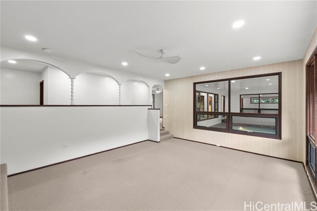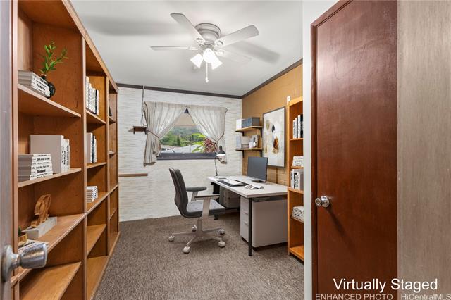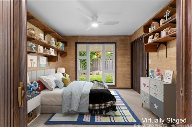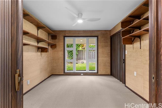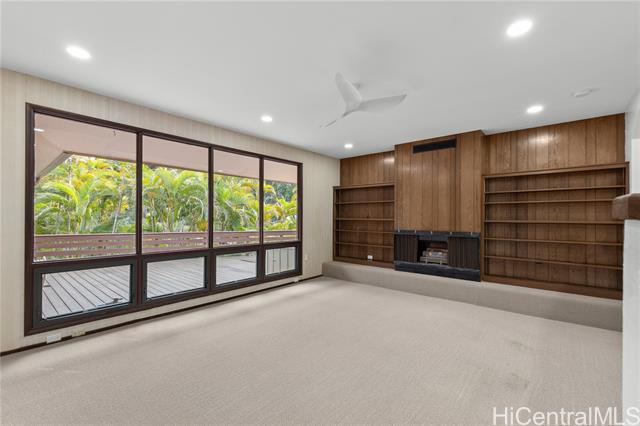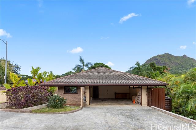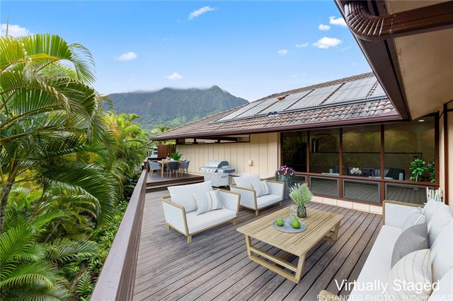 - Discover a rare opportunity in the quiet Maunawili community, tucked against the majestic Ko'olau mountain range. This 3-bedroom, 2-bath home, with a bonus den, sits on an oversized 12,090 sq. ft. lot at the end of a cul-de-sac and features one of its most unique highlights—an indoor heated swimming pool in a screened-in lanai. Large windows and sliding doors open to an expansive wraparound deck overlooking lush tropical foliage, creating a peaceful, treehouse-like setting. The fenced outdoor space includes a small grassy area and mature plantings, while the elevated deck offers a private perch among the trees. Inside, natural light filters through the home, adding warmth to the living spaces. A pull-down ladder in the garage leads to a spacious attic, providing an uncommon amount of storage for a Hawai‘i property. The residence also includes a two-car carport, additional driveway parking, ample attic space and rooftop solar panels dedicated to heating the pool. Located just minutes from Kailua Town, beaches, schools, and freeway access, this Maunawili retreat blends privacy, space, and possibility in one of Windward O‘ahu’s most serene neighborhoods.