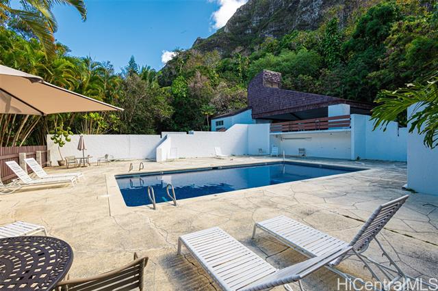 - Rare opportunity in Kaaawa: a VA Assumable loan with a 3.5% interest rate, a financial head-start paving the way to your north shore home. Enjoy a ground level sanctuary where you simply walk right in. No stairs, no fuss—just a single-level flow that opens up to a perspective that never gets old. You’re treated to a dynamic duo of views: the serene, powerful presence of the Ko'olau Mountains and a glittering glimpse of the Pacific Ocean. Tucked away on a quiet street in the Makaua Village community, life takes on a slower, sweeter rhythm. Inside, practicality meets comfort with an in-unit washer/dryer for post-beach cleanup, and two dedicated parking stalls so you and your guests always have a spot. Each bedroom boasts its own full bath, providing a private retreat for everyone. You’re moments from diving into the community's sparkling saltwater pool, wandering down to Kaaawa's sandy shores, or answering the call of the famed Crouching Lion hike. This unit is for those who crave days that end with spectacular sunsets and the sound of the waves. Your slice of paradise, with a payment that actually makes sense, is waiting.