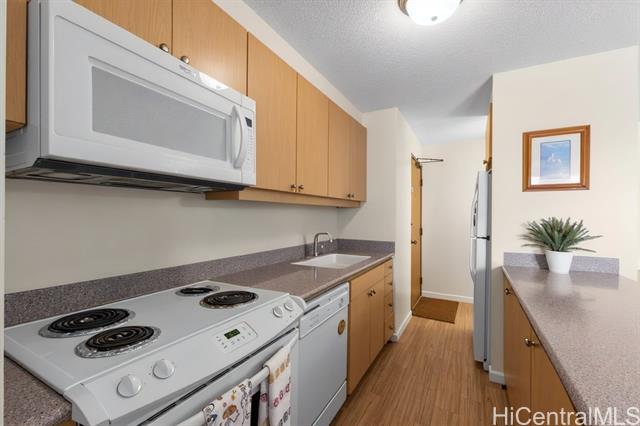 - Great value for a good condition, fully furnished, move-in ready 1-bedroom in Discovery Bay’s Resolution Tower (Diamond Head side). This remodeled unit features laminate flooring throughout, an updated kitchen with dishwasher, central air conditioning, an in-unit washer and dryer, a spacious covered lanai, and 1 assigned parking stall. Located on the cooler, mountain side of the building, this unit offers comfortable and convenient island living with quick access to Waikiki and metro Honolulu. Amenities include a pool, spa, sauna, fitness center, recreation/sun deck, BBQ area, 24-hour security, and full-service management. Maintenance fee covers Wi-Fi, basic cable, hot water, sewer, and AC chiller. Convenient Waikiki location near Ala Moana Center, Ala Moana Beach Park, dining, shopping, and entertainment. The unit is 96.893% fee simple with the AOAO holding both the right and obligation to acquire the remaining 3.107% leasehold interest by December 31, 2039. Lease rent is $37.87/quarter or $12.62/month.