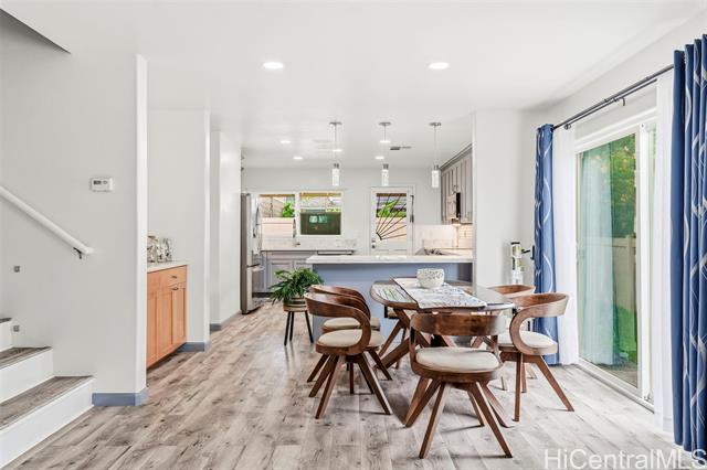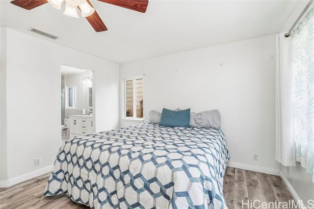 - Previously offered through a bidding platform, this property is now listed at market value and open to traditional offers. Beautifully remodeled 3 bed, 2.5 bath home in the desirable gated Huelani subdivision. The primary suite is on the main level w/ a remodeled ensuite featuring dual sinks, a tile shower, & a walk-in closet. The kitchen was fully renovated in 2022 w/ $55K in upgrades, including quartz counters, stainless appliances, cabinet under lighting, a large walk-in pantry, & peninsula seating. Laminate flooring runs throughout. Upstairs are two spacious bedrooms, one with a walk-in closet, plus an updated full bath. Enjoy a landscaped backyard w/ raised garden beds. Additional features include 33 OWNED SOLAR PANELS on NET METERING, gutters, a 2-car garage w/ laundry & extra storage, & a transferable home warranty. Move-in ready & beautifully maintained. The community features a gorgeous swimming pool, a well-appointed recreation area, & an indoor gym. Pride of ownership is evident throughout. Contact listing agent for additional details or to schedule a private showing.