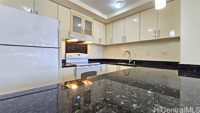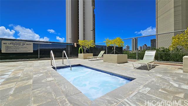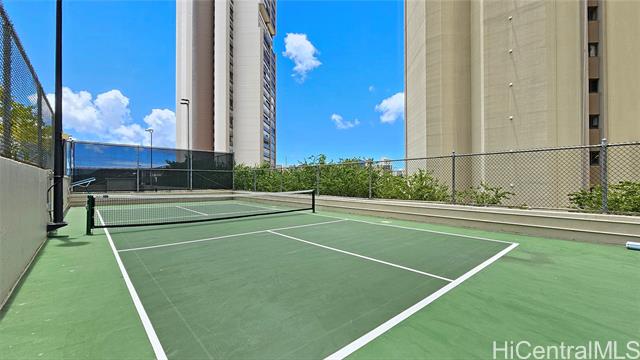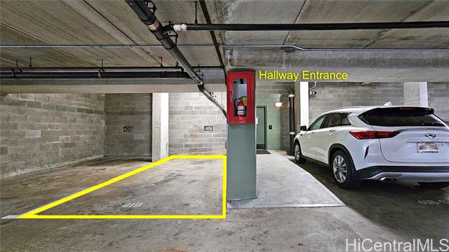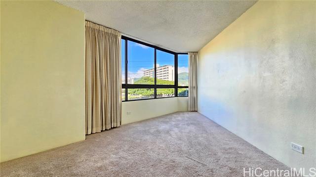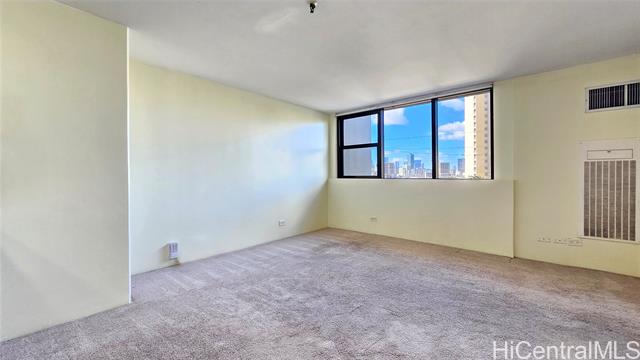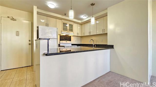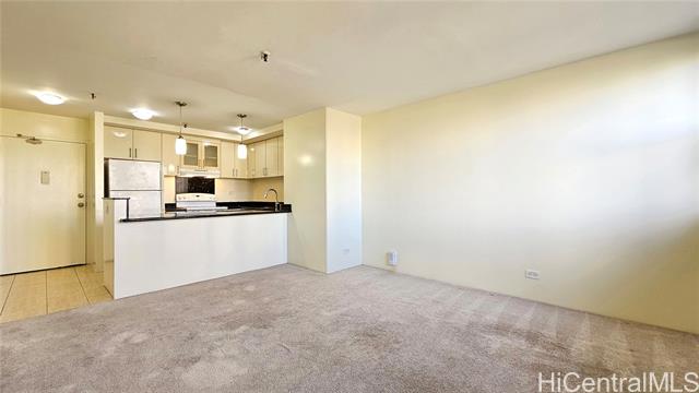 - Brand new carpet installed 4/14/2025. Largest 1 bedroom in Iolani Court Plaza. Extra spacious, 1 of only 2 units that are 578 sq ft of interior living space. Brand new paint. Renovated kitchen and bath. Desirable covered secured parking stall on same floor as unit, just exit door on 4th floor hallway. Resort like amenities and central A/C, 25 guest stalls, 2 tennis courts, pickle ball court, pool, jacuzzi, sauna, putting green and car wash area. Fee simple.