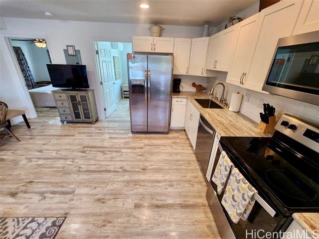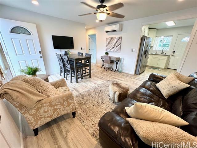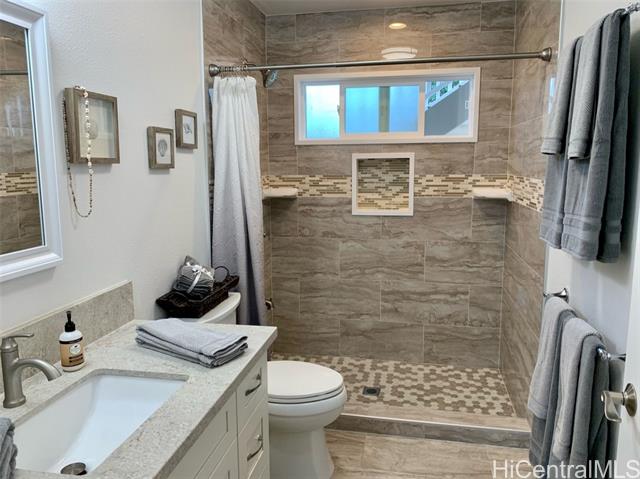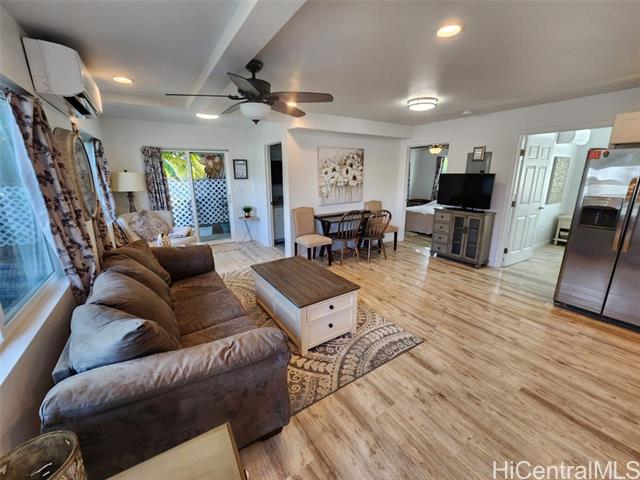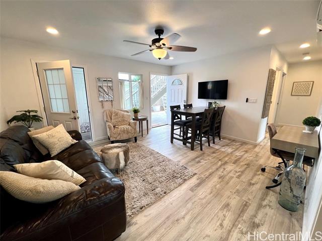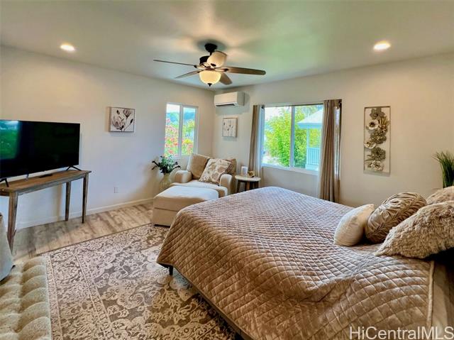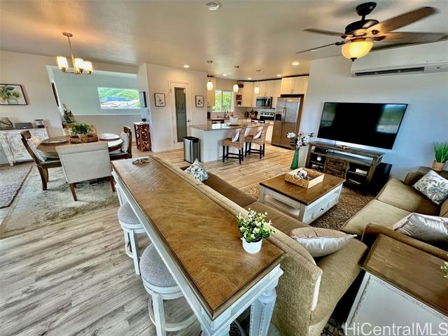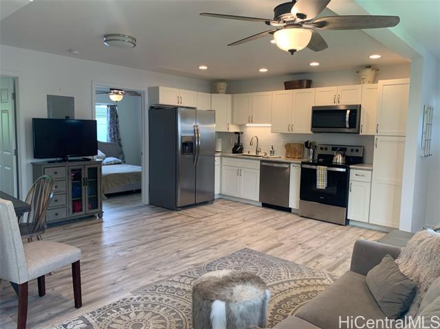- Elegant 5-year-old home offering exceptional investment potential and flexible multigenerational living. This spacious property features a two-level main home with an attached ADU, a 2-car garage, and parking for up to 9 cars. Currently operated as a 30–90 day rental. The private ADU includes a full kitchen and living/dining area—ideal for rental income or extended family. The main home offers separate living spaces on each level. Upstairs includes the primary kitchen, great room, 2 lanais, and 4 bedrooms/2 baths (one used as an office). Downstairs features a family room with dining area, kitchenette, 3 bedrooms/1 bath, and 2 small yards with a covered lanai. The ohana provides additional privacy with its own full kitchen, great room, 2 bedrooms/1 bath, and a fenced yard. All rooms offer split A/C, ceiling fans, and large windows for natural light and breezes. Three private living areas, each with separate entrances and laundry. Fully furnished, turnkey, with four years of strong rental history. Please do not disturb tenants.