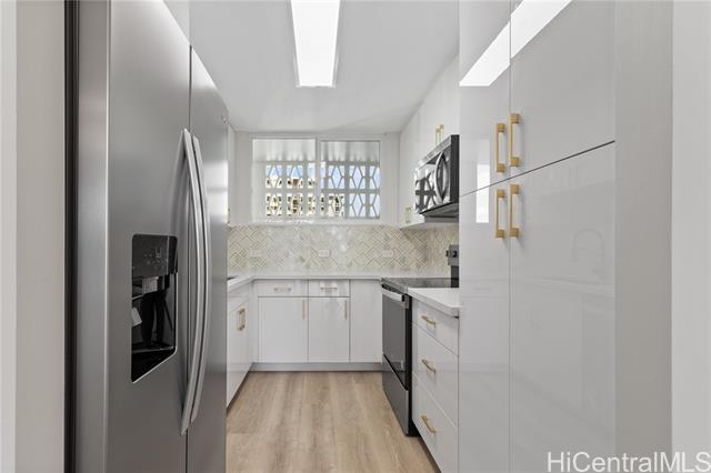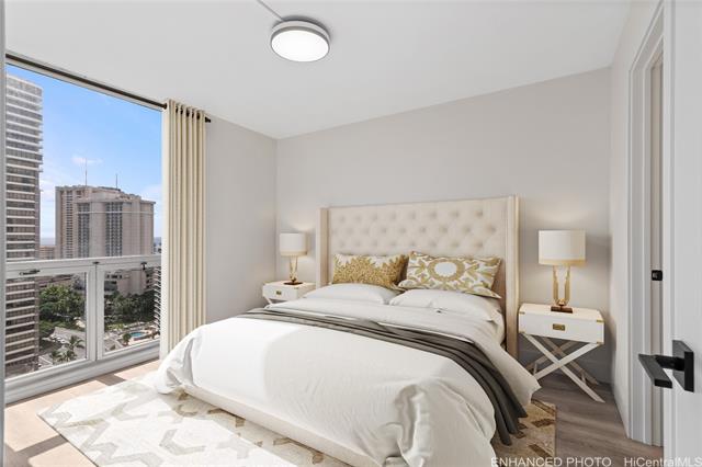 - Experience the best of Waikiki living in this fully renovated 2-bed, 2-bath residence in the highly sought-after Waipuna, which showcases ocean and Diamond Head views. No detail was spared in this meticulous, top-to-bottom renovation. The home features split A/C systems in every room. The spacious primary suite impresses with a dual-sink vanity, a large shower with bench seating, an upgraded shower system, and spacious closet with abundant storage. The completely upgraded kitchen stands out with sleek high-gloss acrylic cabinetry, exceptional storage rarely found in comparable units, a multi-drawer pantry, lazy Susan, and pull-out corner cabinet systems. Stainless steel appliances and a modern layout create a clean, streamlined cooking experience. Additional upgrades include a brand-new washer/dryer, designer lighting throughout, new vinyl sliding windows, and more. This one-of-a-kind Waipuna home is a rare offering—modern, thoughtfully upgraded, and truly move-in ready. An opportunity not to be missed!