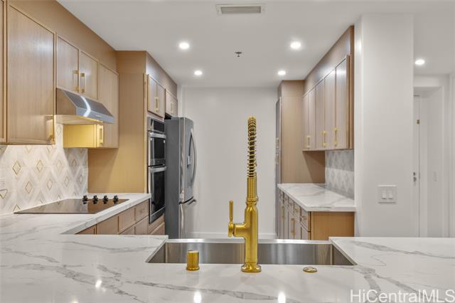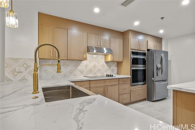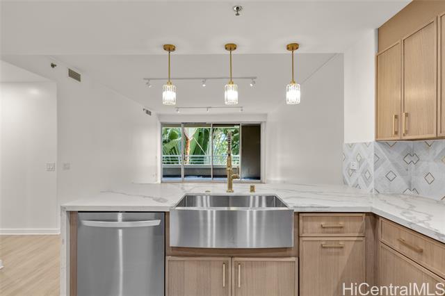 - Welcome to Kalele Kai, a gated marina-front community where timeless elegance meets resort-style living. This exceptional, completely renovated residence (Bldg 2, built in 1993) offers an open-concept sanctuary designed for relaxation and sophisticated entertaining. Inside ,discover a freshly painted interior featuring brand-new luxury vinyl plank flooring, all-new stainless steel kitchen appliances, a new sink, and new toilets. Central A/C ensures year-round comfort, while an expansive 265 SF lanai provides a private oasis, perfect for enjoying the gentle marina breezes. Kalele Kai isn't just a home; it's a lifestyle. Residents enjoy carefully curated amenities including private marina access, a sparkling pool, whirlpool, BBQ area, and clubhouse. The lush, tropical landscaping and 24/7 security provide a sense of peace and privacy, a world away from the daily hustle and bustle. Yet, you're mere moments from everyday conveniences like Costco, Safeway, CVS, Hawaii Kai Towne Center, restaurants, hiking trails, and beaches. Discover your own private retreat. Schedule a showing today!
