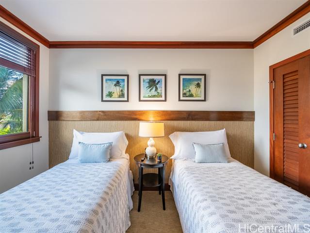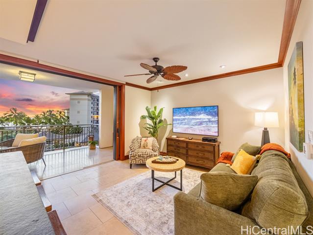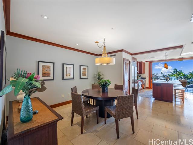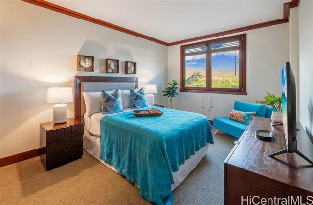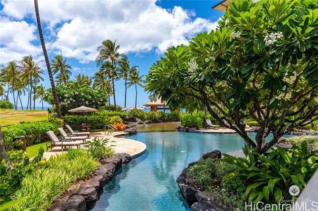 - Welcome to Villa O505, where sweeping views of the lagoon and the Pacific unfold directly from your living room. This 3 bedroom, 2.5 bath Villa blends resort living with refined craftsmanship, featuring rich mahogany finishes, solid wood doors, travertine flooring, and a gourmet kitchen designed with Sub-Zero and Wolf appliances. A generous 227 square foot lanai extends the living space outward, offering west-facing sunset vistas above the pools and lush tropical grounds. Offered beautifully furnished with everything needed for full-time enjoyment or seamless participation in the hotel program. A stunning gourmet kitchen anchors the open floor plan, while the primary suite and guest rooms provide comfort and privacy for families or visiting guests. With a strong rental history, two parking stalls, and oceanfront location, this residence offers exceptional flexibility. Resort amenities include direct beach and lagoon access, multiple pools, a brand-new fitness center, barbecue areas, landscaped pathways, koa ponds, beach bar, and the ease of a true lock-and-go lifestyle within one of Oahu’s most sought-after beachfront communities. Experience the Beach Villas at Ko Olina today!